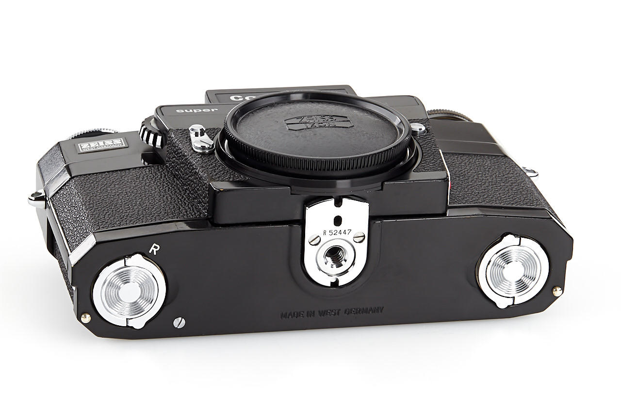 rare black paint camera with late style Zeiss logo on front, with body cap, hard to find in this beautiful condition