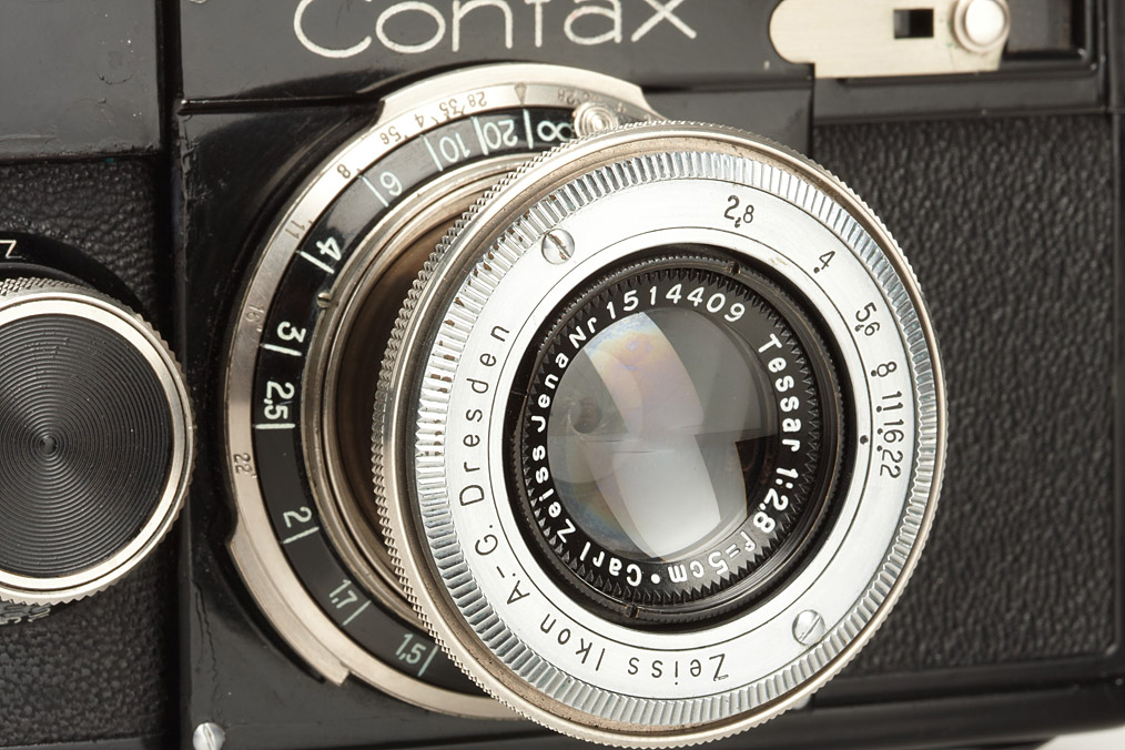 P' engraved after serial number, matching serial number in back door (without 'P'), camera body with some repaint on front top plate (shutter sticky), chrome/nickel Tessar 2.8/5cm no.1514409, yellow filter, everready case, copy of instructions