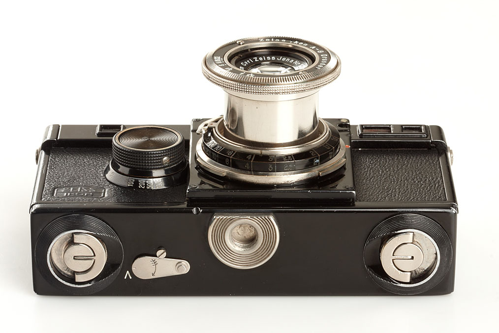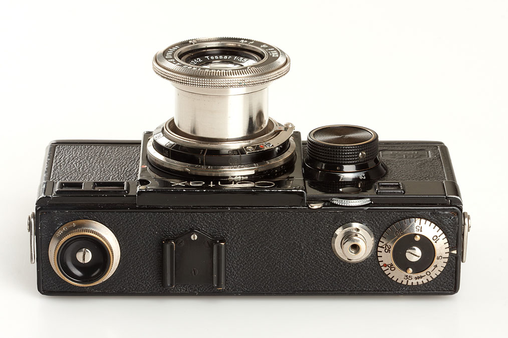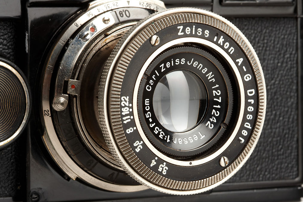 early version with one dimple, in very fine original condition (finder mask missing) with Tessar 3.5/5cm no.1271242, matching serial number in backdoor