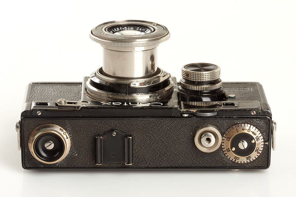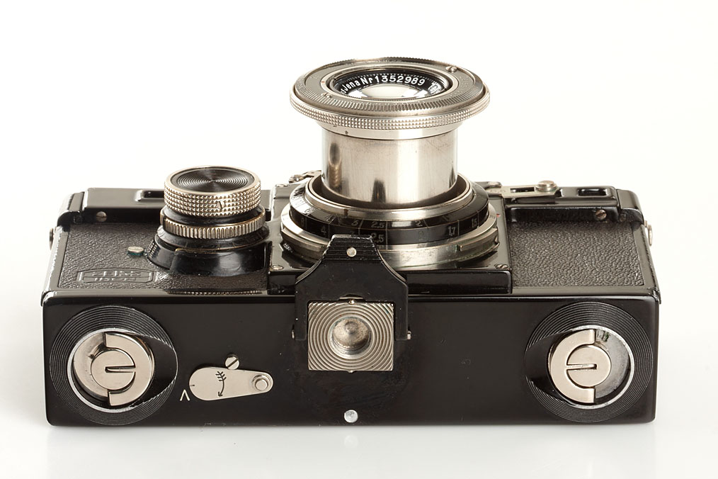 first type with long speed mechanism in original condition (shutter needs attention), with black/nickel Tessar 3.5/5cm no.1352989, matching serial number in back door