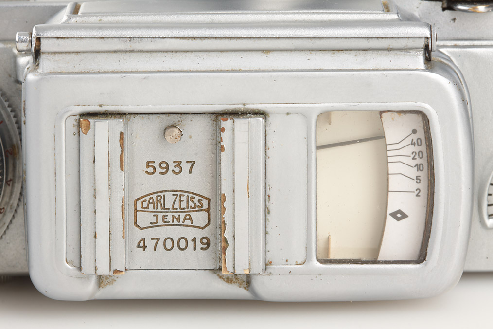 one of maybe only 3 existing Contax Jena III with dual serial numbers on accessory shoe (Kiev and Jena number), inside and in back door engraved 5937, Sonnar 2/5cm T no.2852849, matching Jena case without markings