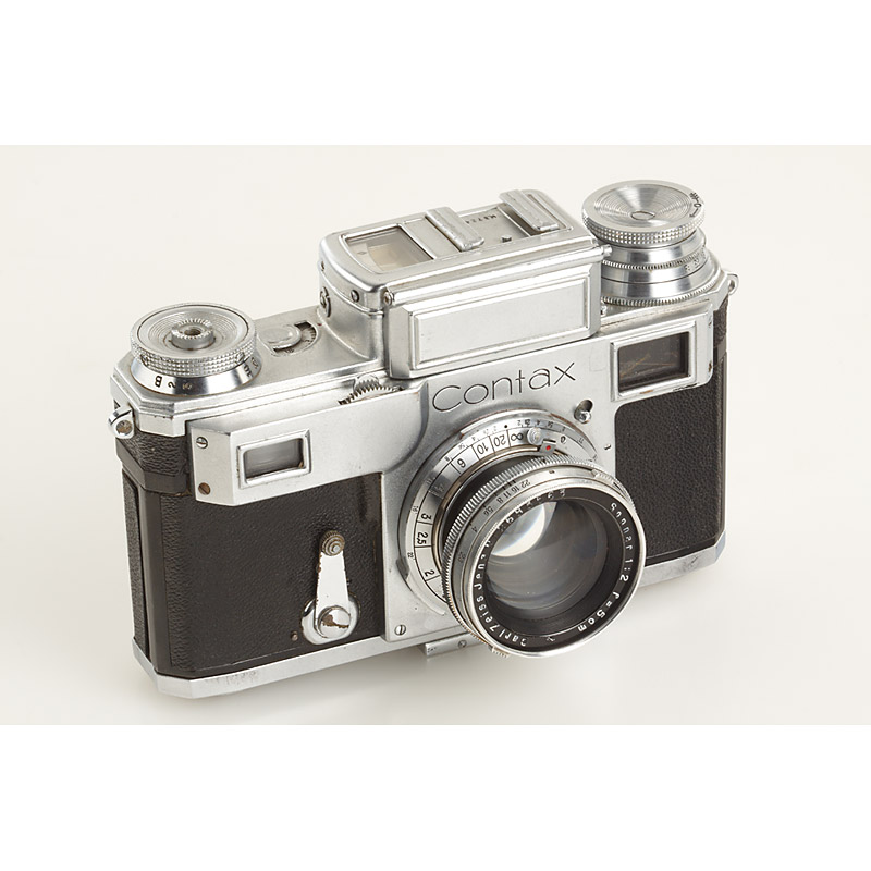 100% authentic, military Contax III with 'Kriegsmarine-Eigentum MF1320' engraved on back, Sonnar 2/5cm no.2683563, everready case stamped MF 1187 - very rare and fully original