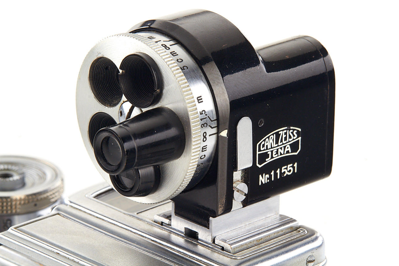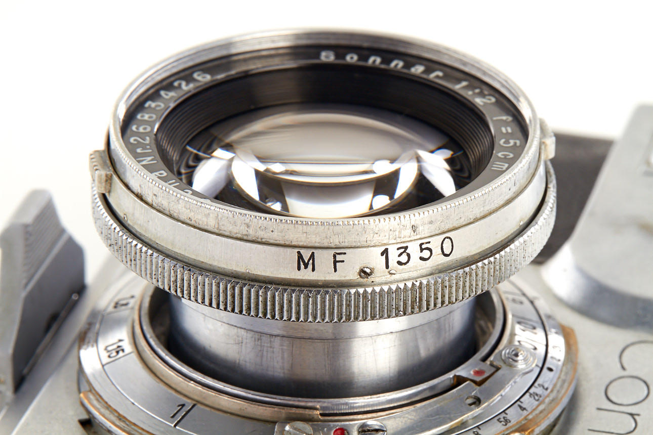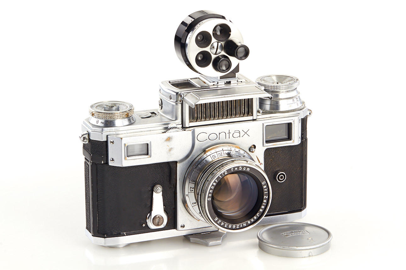 military Contax III, engraved on top plate with 'Kriegsmarine-Eigentum MF1350' (partially defaced), with matching Sonnar 2/5cm no.2683426 engraved 'MF1350', cap and universal finder 436/70 no.11551, in good condition