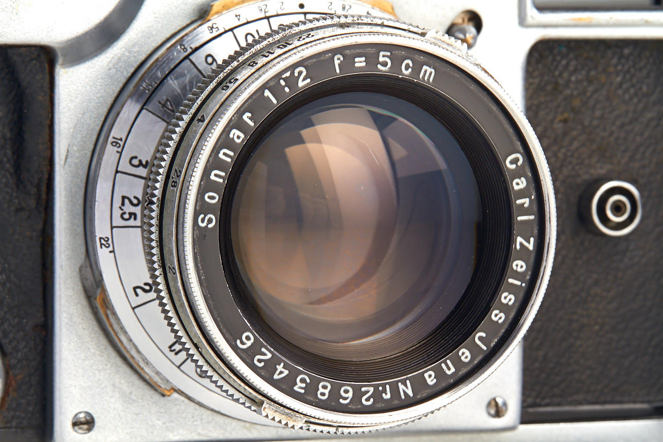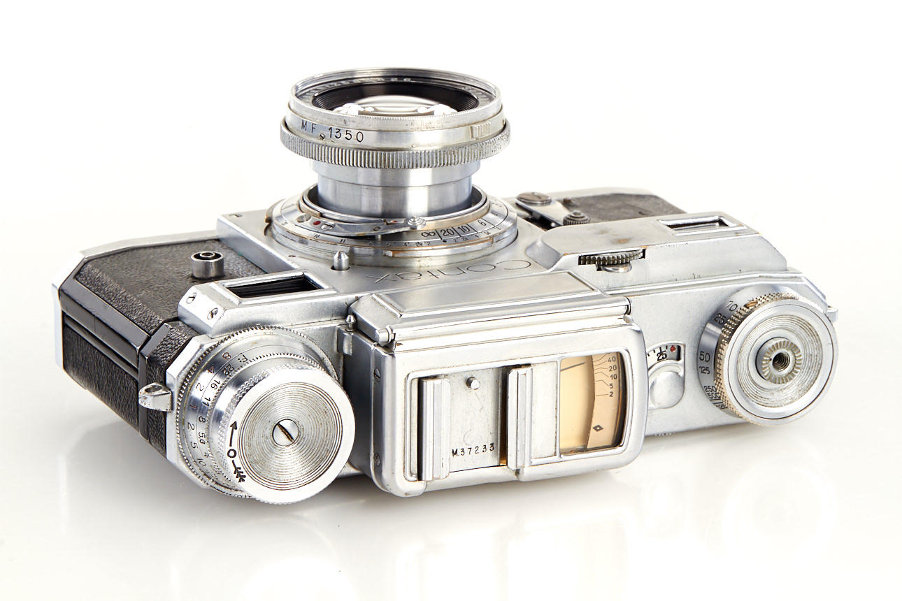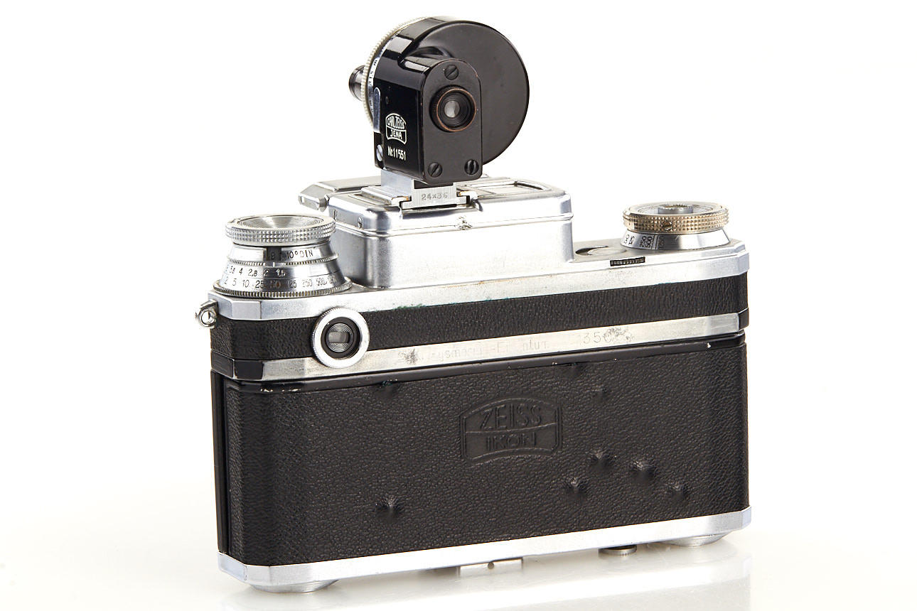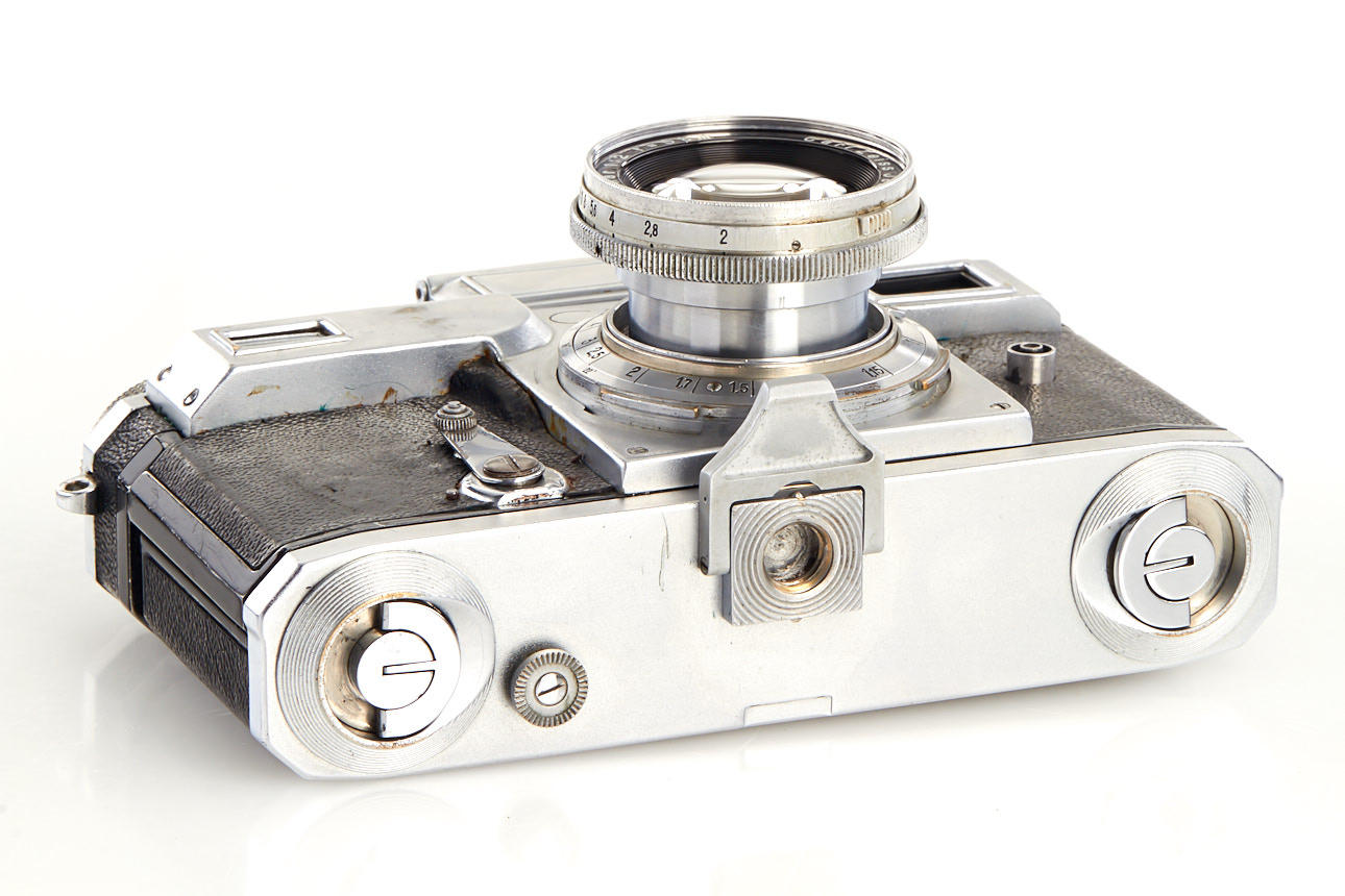 military Contax III, engraved on top plate with 'Kriegsmarine-Eigentum MF1350' (partially defaced), with matching Sonnar 2/5cm no.2683426 engraved 'MF1350', cap and universal finder 436/70 no.11551, in good condition