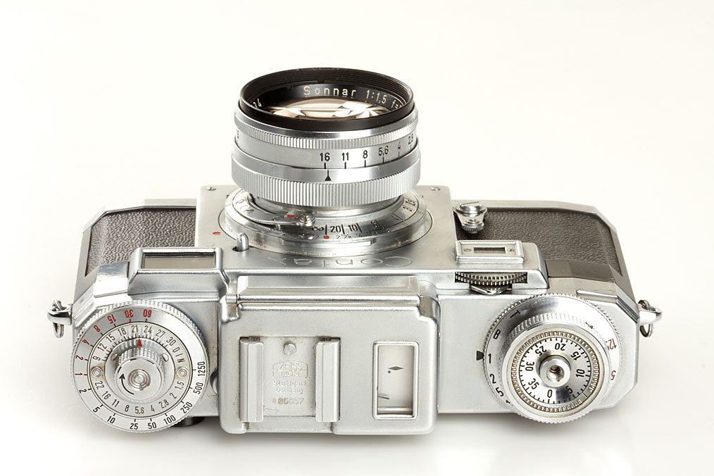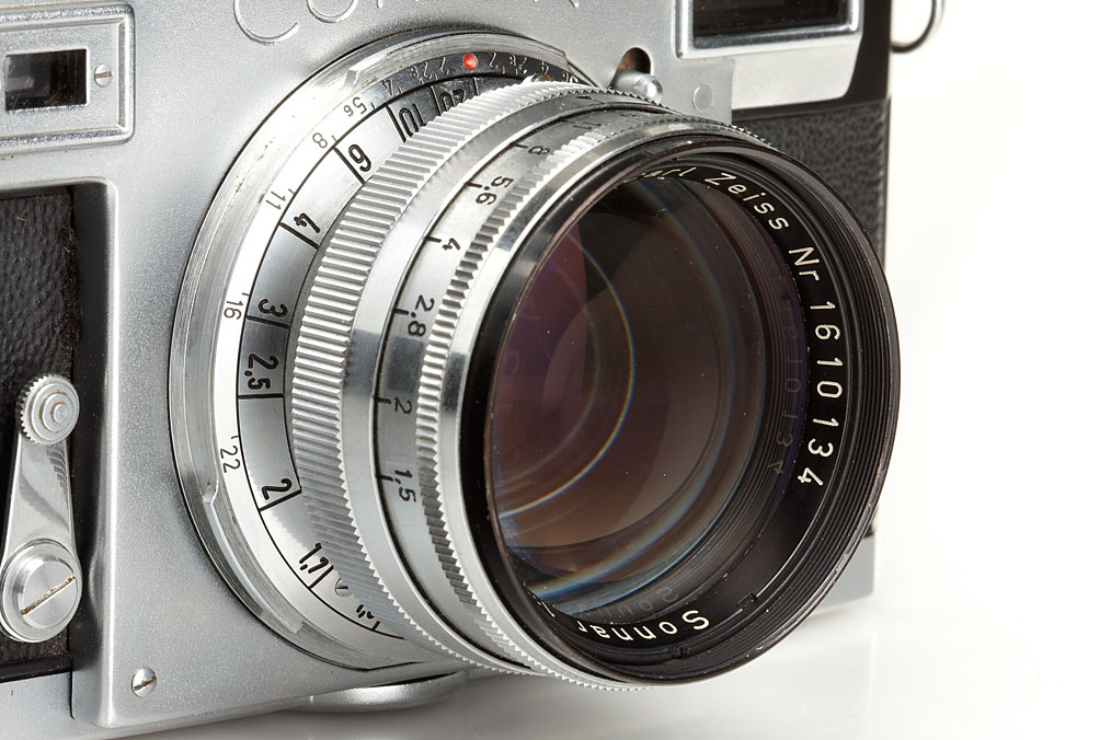 second type body in good working order with Sonnar 1.5/50mm no.1610134, Planar 3.5/35mm no.1347058, both caps, 3 filters, cable release, instruction book, in Zeiss Ikon outfit case