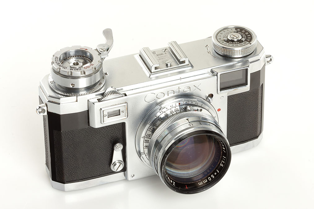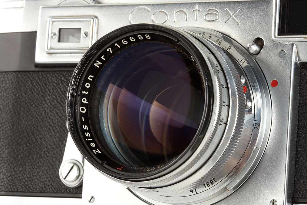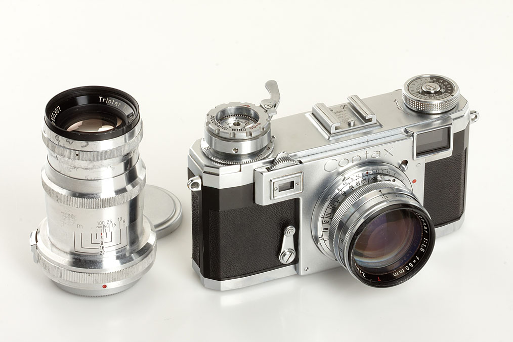 in good working order with Zeiss-Opton Sonnar 1.5/50mm T no.716688 (everready case), Zeiss-Opton Triotar 4/85mm T no.855307 (caps, cond. B), Accurapid wind CO-II