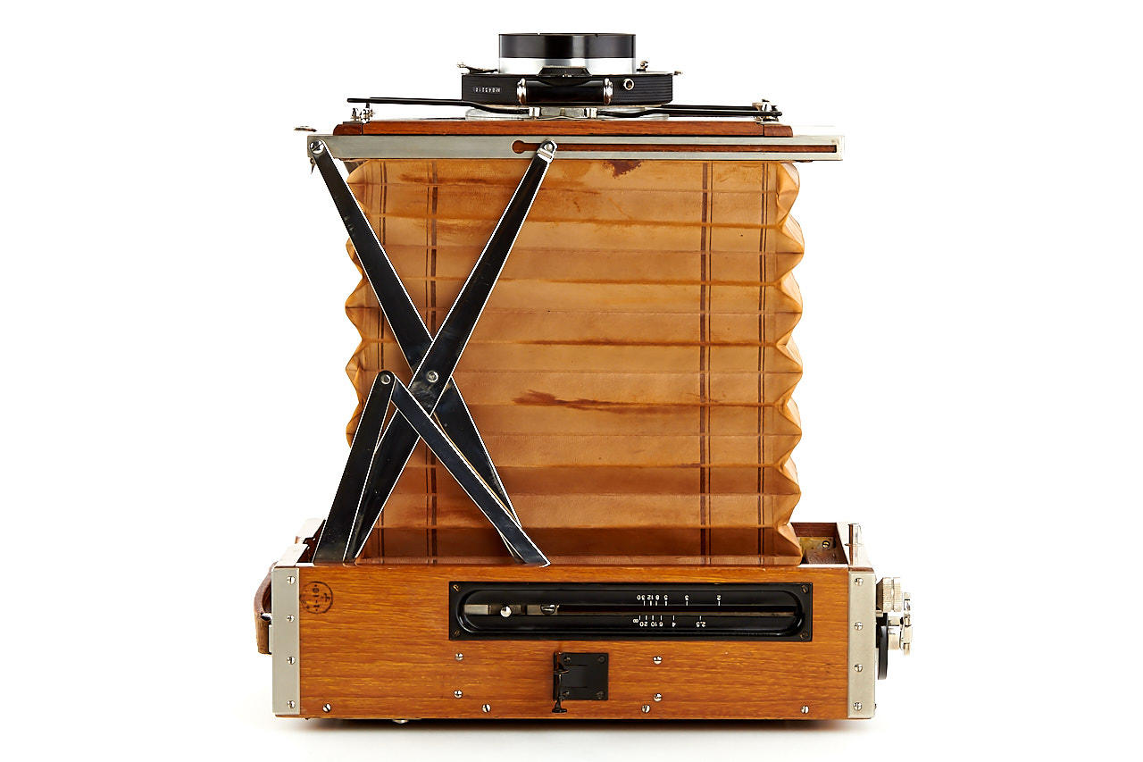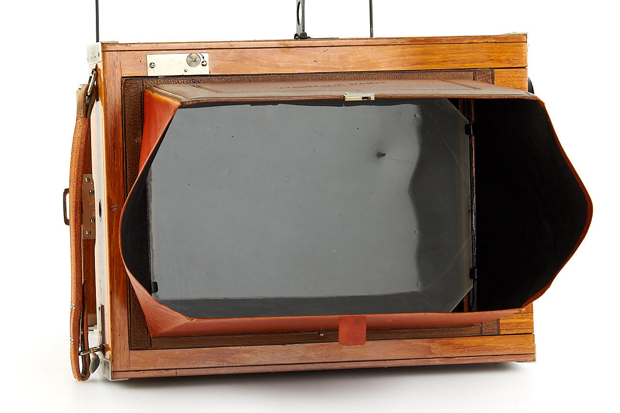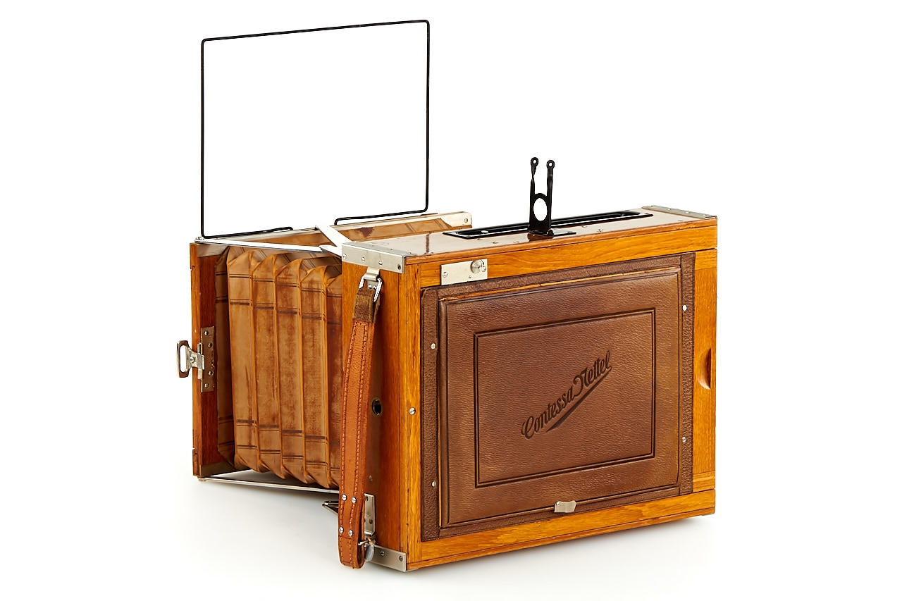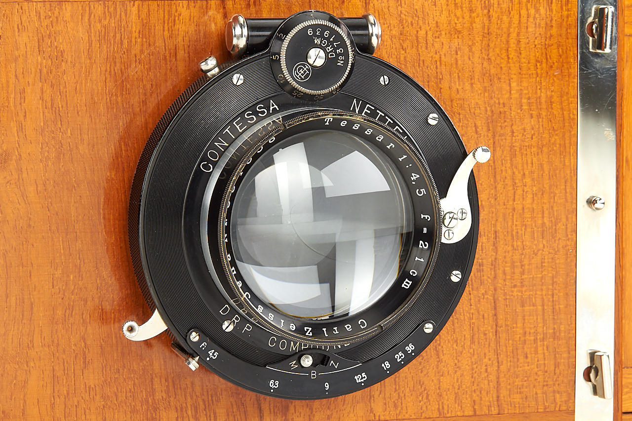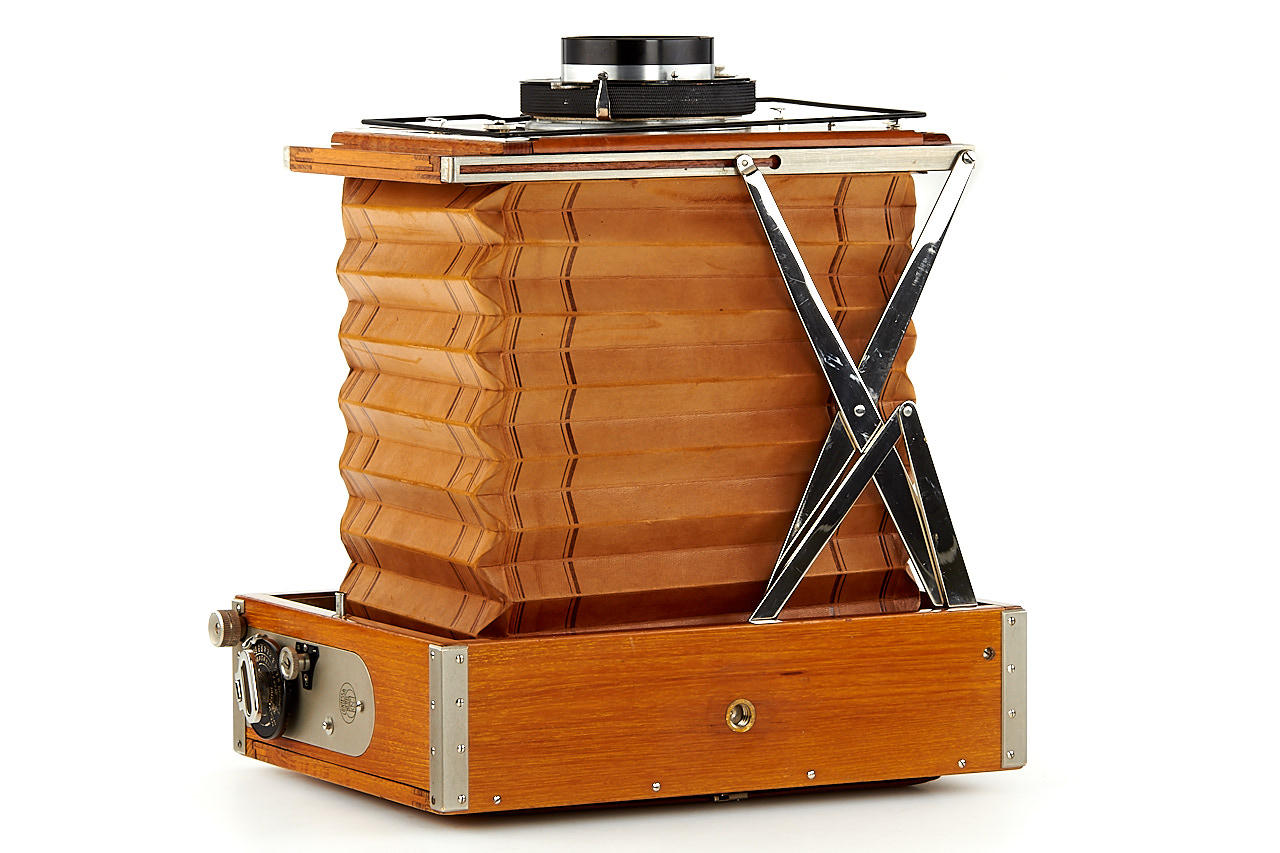 large tropical camera for 13x18cm plates, in near mint condition, with original light-brown bellows, Tessar 4.5/21cm no.664058 in Compound shutter, very rare in this size and in such beautiful condition!