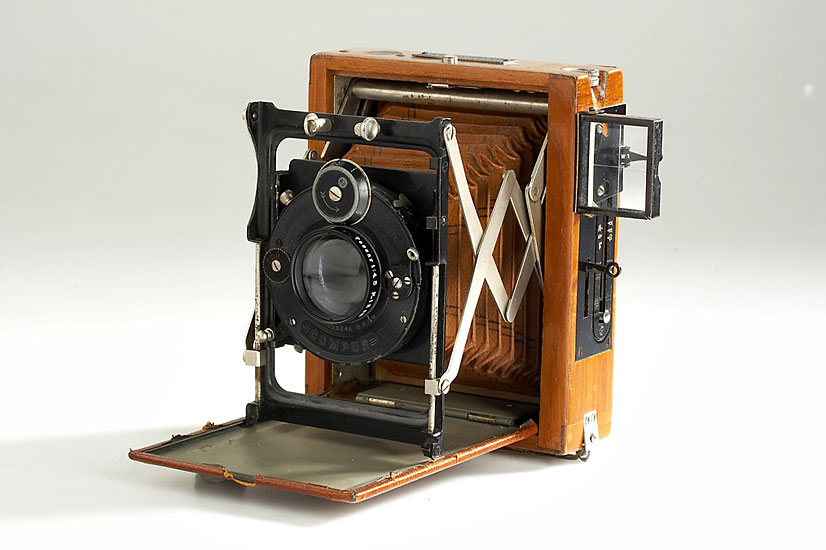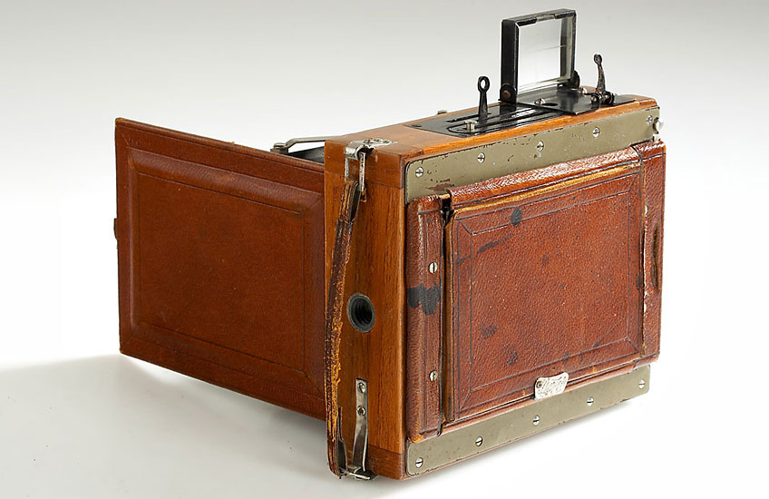 6.5x9cm, rare tropical model, teak wood body, brown bellows and back door, Tessar 4.5/12cm no.516085, case, film-holders, dealer's plate engraved: Wilhelm Haar & Co. Wien V, Schönbrunnerstr. 65