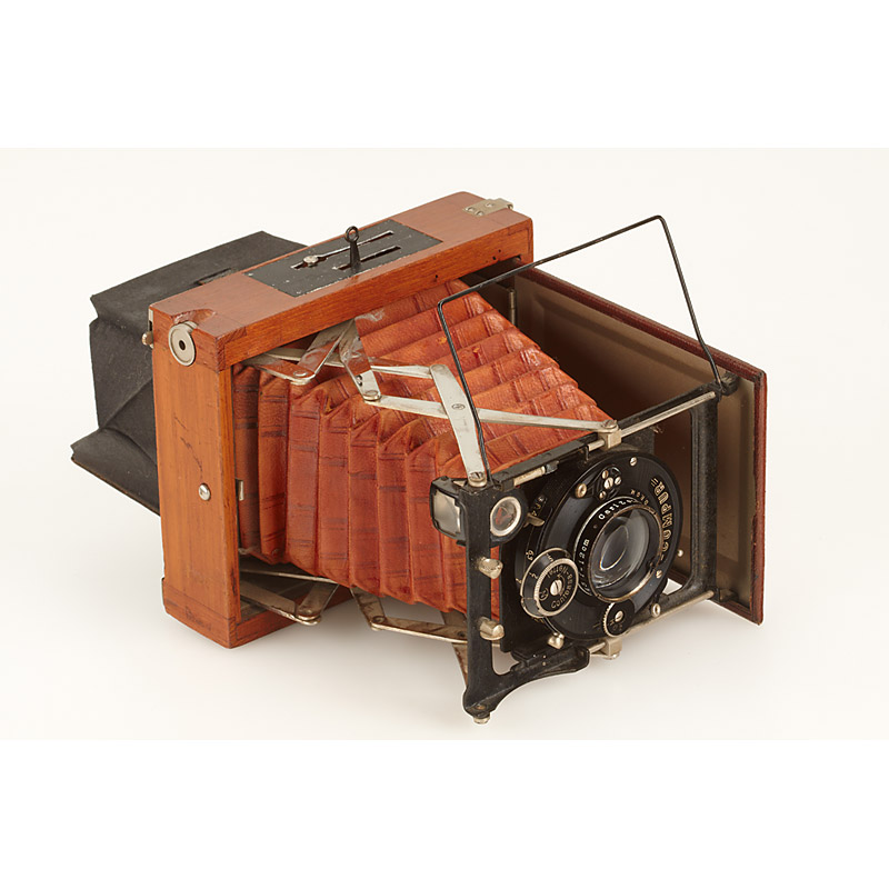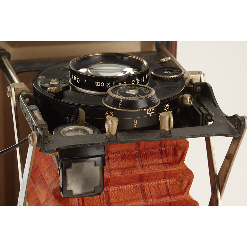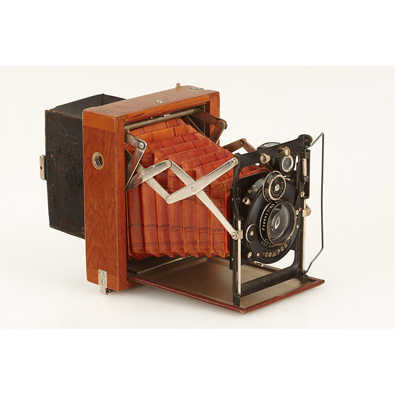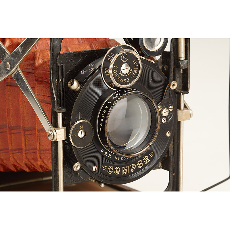 6.5x9cm, brown bellows, Tessar 4.5/12cm no.620013 in good working Compur shutter, black KW ground glass holder