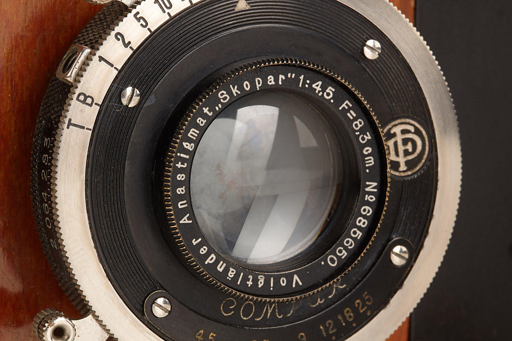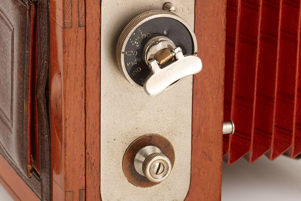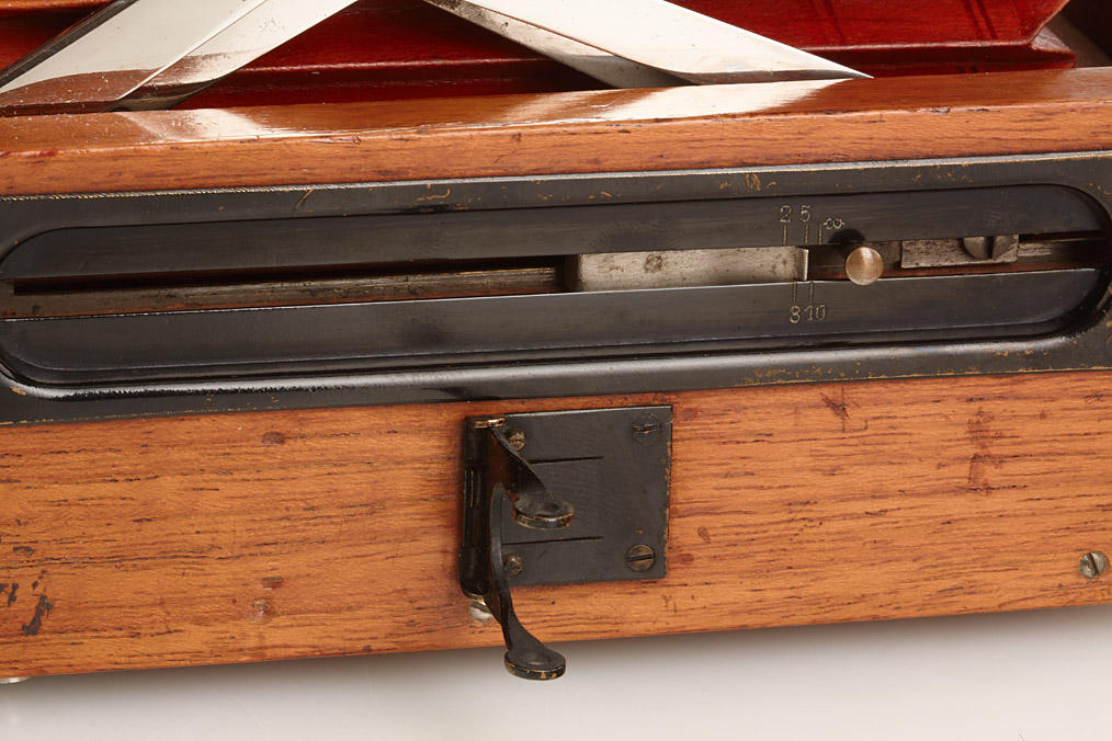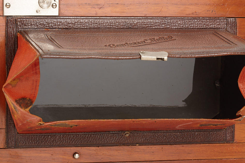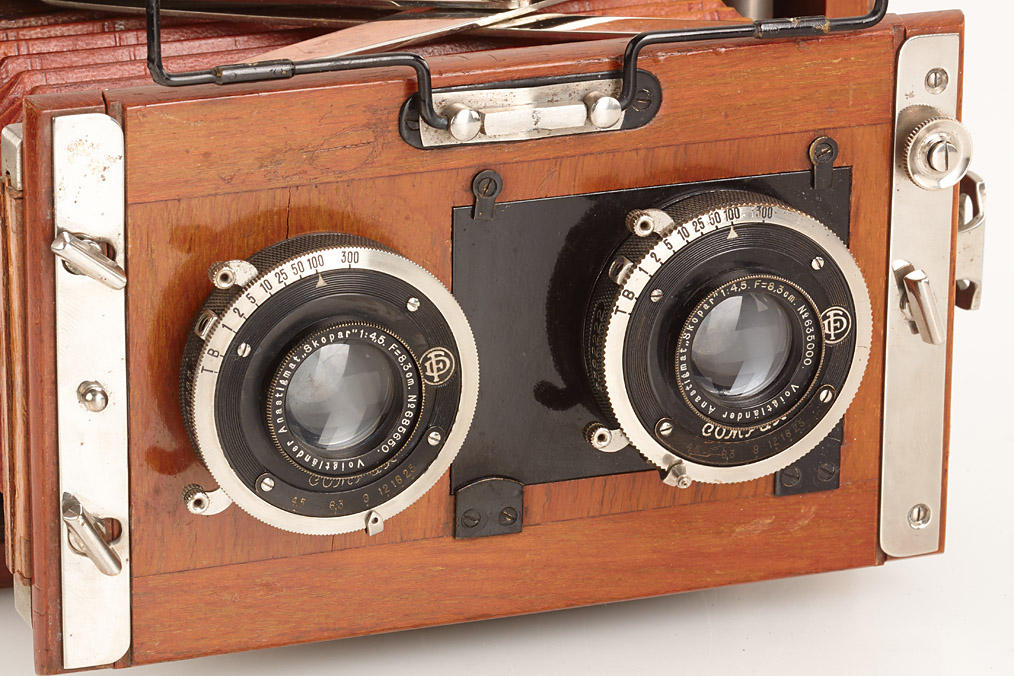 6x13cm, rare tropical stereo camera with focal-plane shutter to 1/1200 (needs attention), Tessar 4.5/9cm lenses nos.530466/479 with both caps, a pair of Schneider Xenar 5.5/7.5cm lenses nos.174364/5 with on lens board with both caps, brown bellows, frame finder for stereo and panoramic exposures, attached Rhaco viewfinder, excellent condition with stereo plate holder