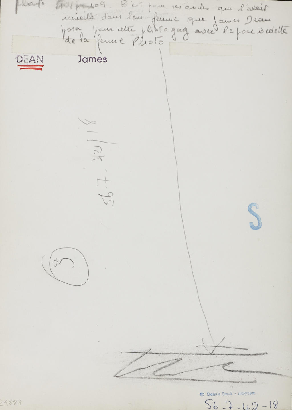 Vintage silver print 29,3 x 21,5 cm (11.5 x 8.5 in) Photographer's agency stamp and “DEAN James” stamp on the reverse, various notations in pencil on the reverse James Dean posiert auf der Farm seines Onkels Winslow mit einem Schwein; publiziert am 7. März 1955 in Life als Teil von Stocks Fotostory ‘Moody New Star’ (‘Newcomer mit Launen’) / James Dean on the farm of his uncle Marcus Winslow, posing with a pig; the image was published in Life on March 7th, 1955 as part of Stock's photo story ‘Moody New Star’.