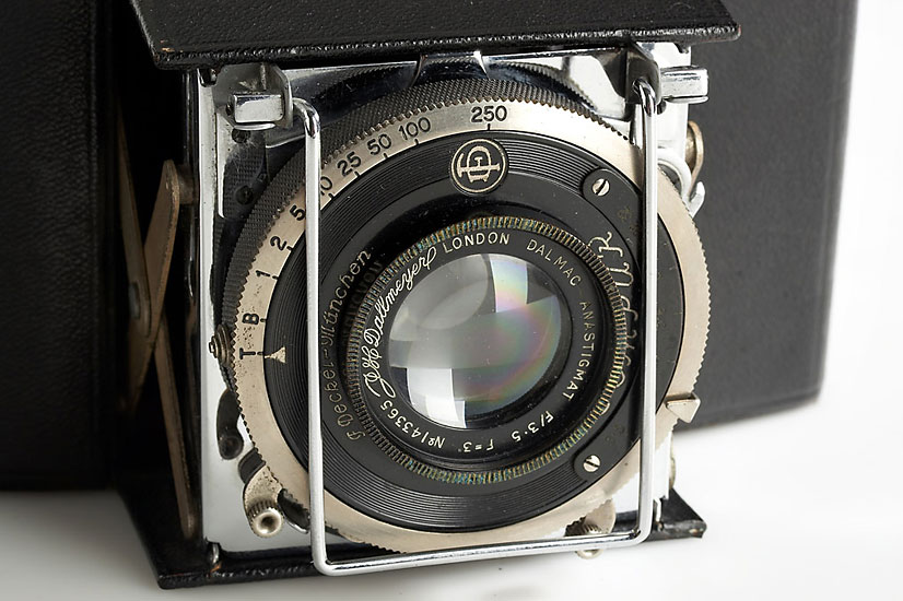 rare 4.5x6cm viewfinder camera for rollfilm 120, nice condition with Dalmac 3.5/3" in Compur shutter