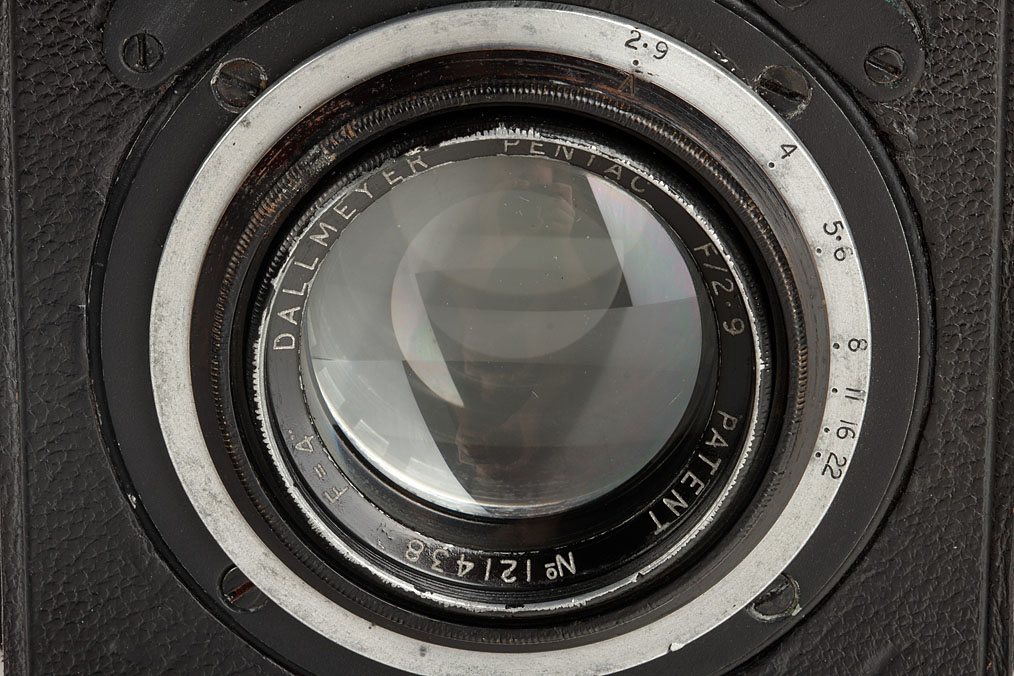 for 4.5x6cm exposures, in very good original condition with fast Pentac 2.9/4" no.121438, working shutter, focusing screen adapter