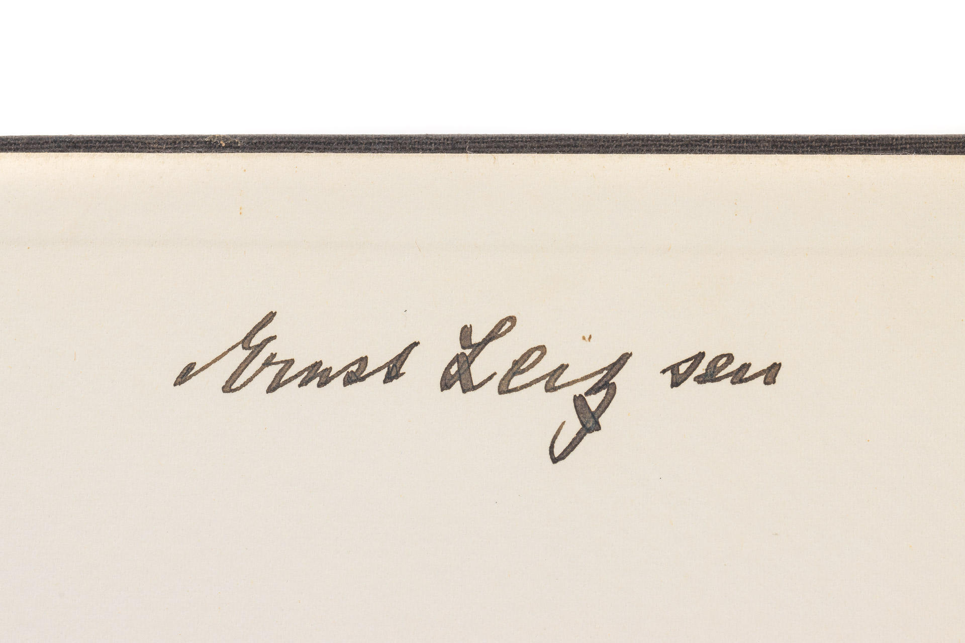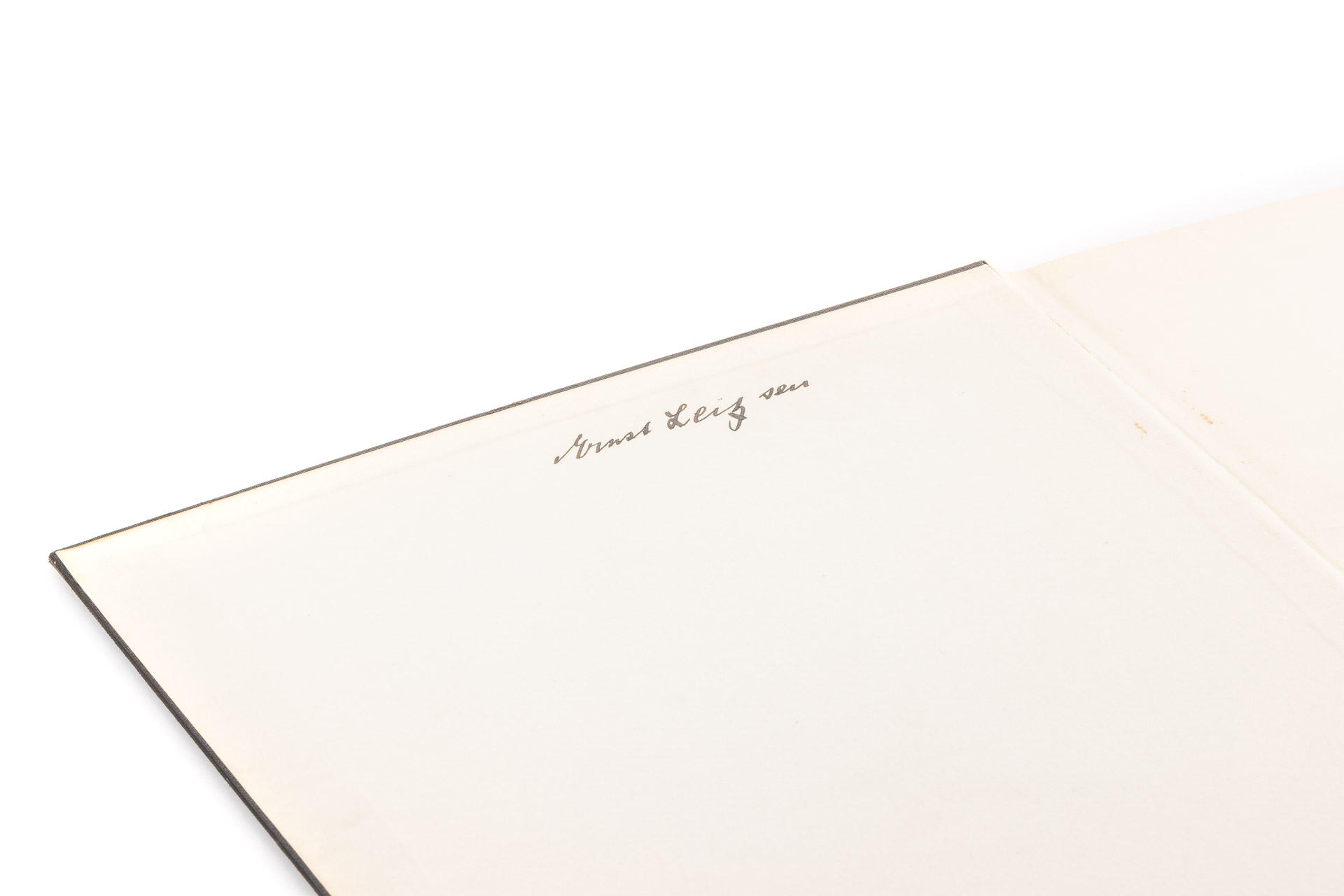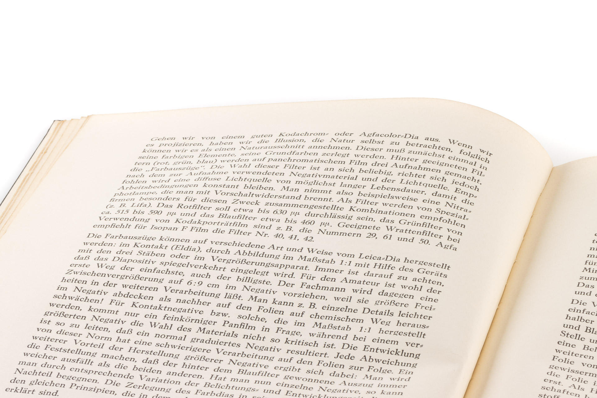 First German edition of "The Colour Leica Book" signed by Ernst Leitz senior on the second page, in mint condition, 56 pages of text and 72 pages with many photo illustrations on art paper (22.2 x 25.1 cm) about early colour theory and photography with Leica cameras, written by Anton F. Baumann