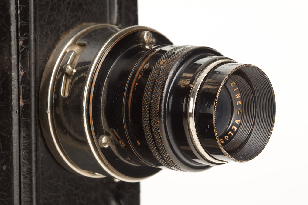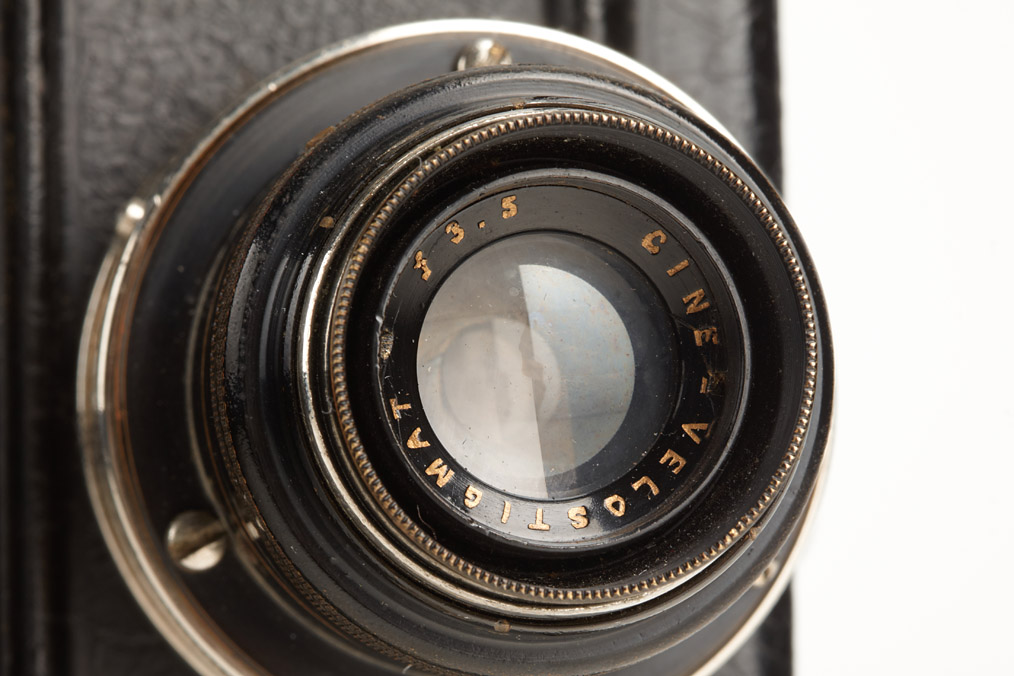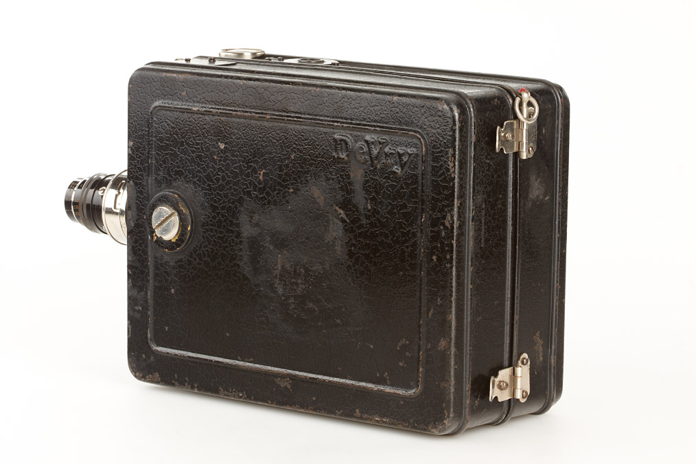 First model of 35mm model produced until the mid 1950’s by DeVry of Chicago. The camera can alternatively be operated by hand crank or the integrated spring motor drive, takes 30m daylight spools, Wollensak Velsotigmat 3.5 in bayonet mount.