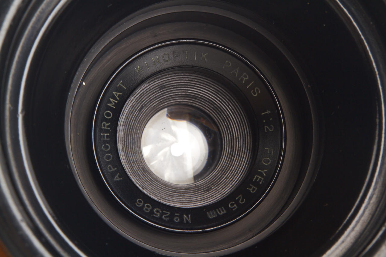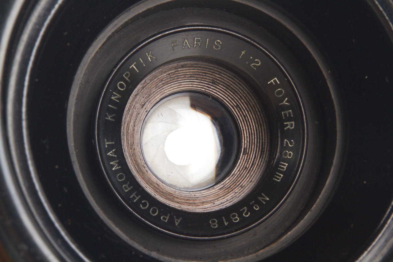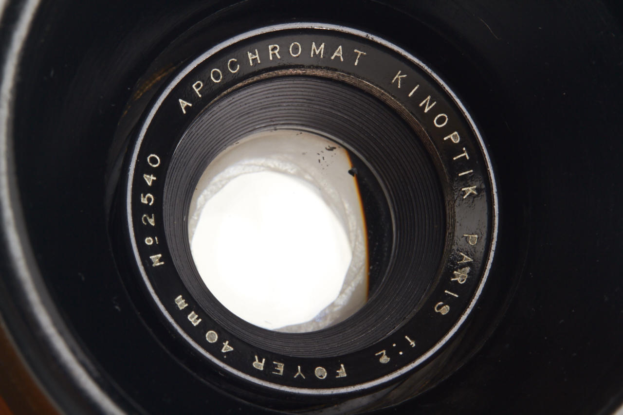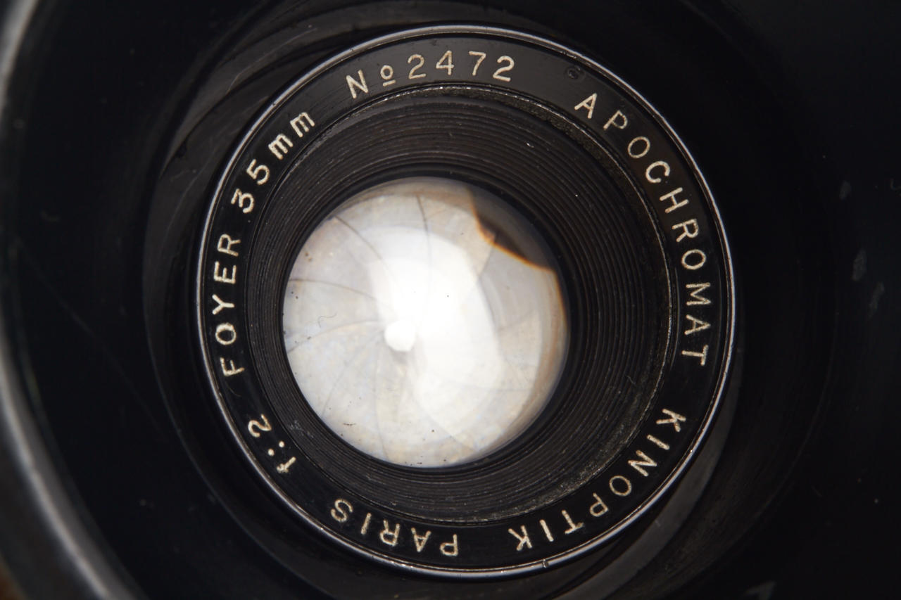 professional hand-cranked 35mm motion picture camera, outfit with one Kinoptik 2/50mm no.21413 and seven sought after, high quality Kinoptik Apochromat f.2 lenses: 25mm, 28mm, 35mm, 40mm, 50mm, 75mm and 100mm, all lenses in good condition with clean optics, all Apochromat lenses with maker's boxes, the set also includes wooden carrying cases for the camera and for the lenses, two film spools, two cranks and hood with filter slots