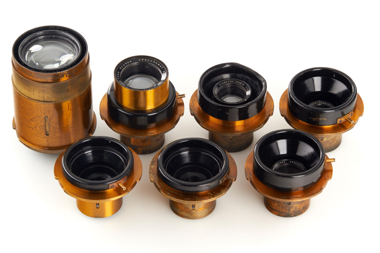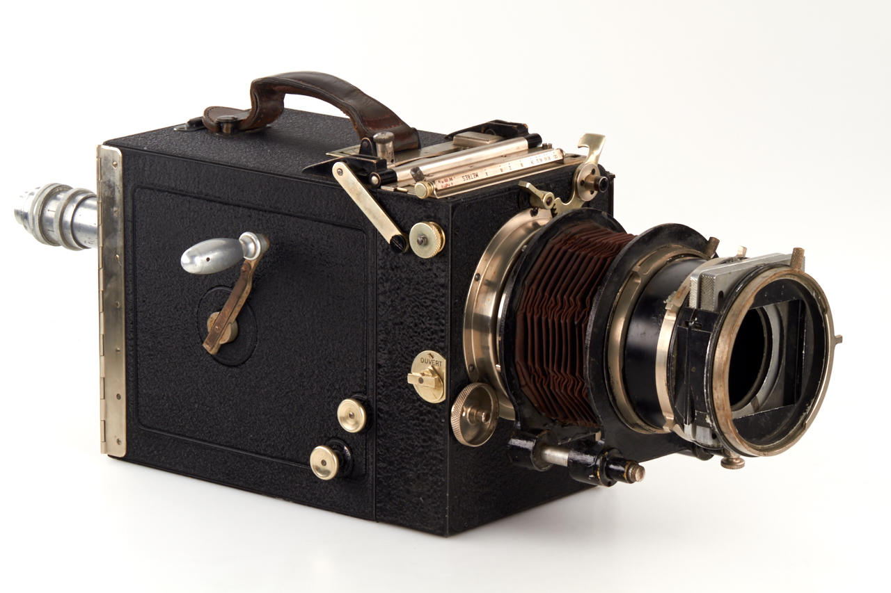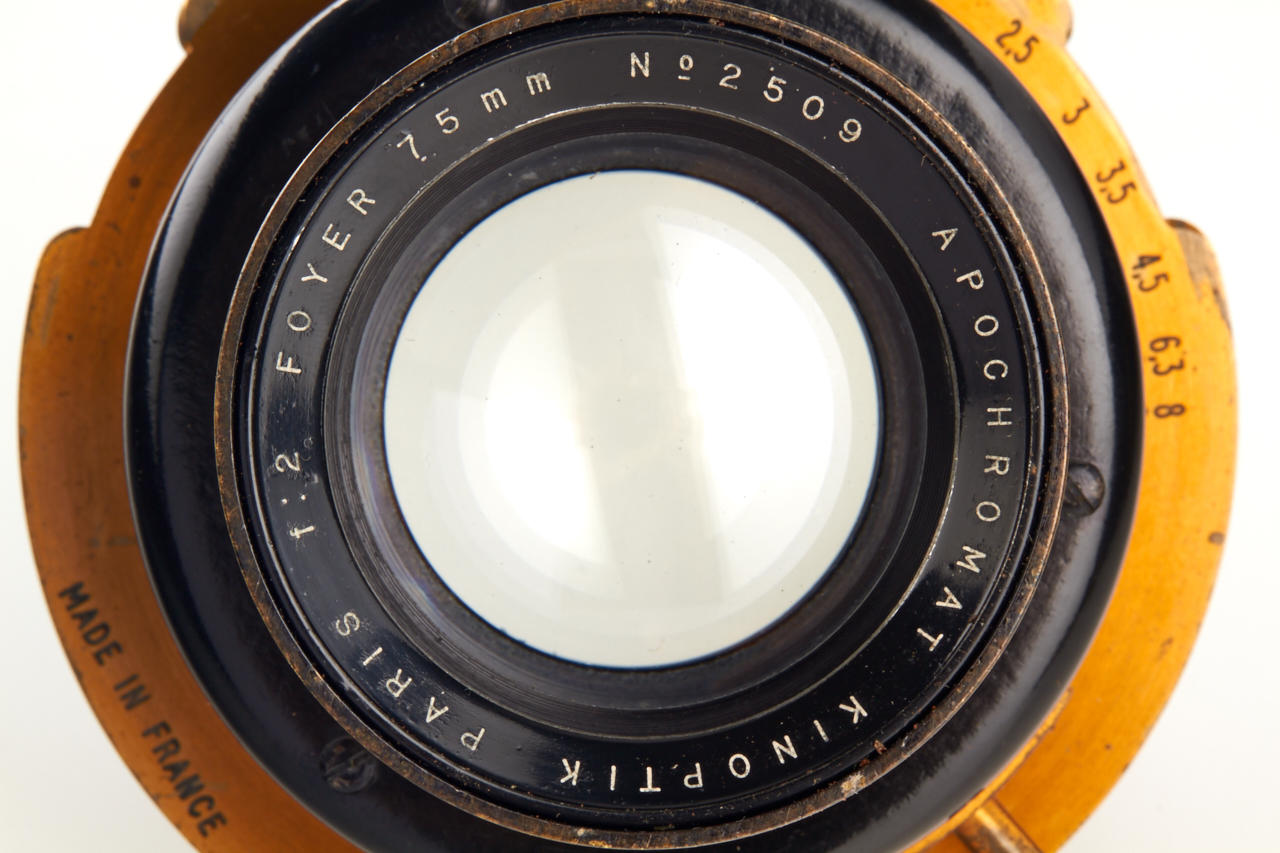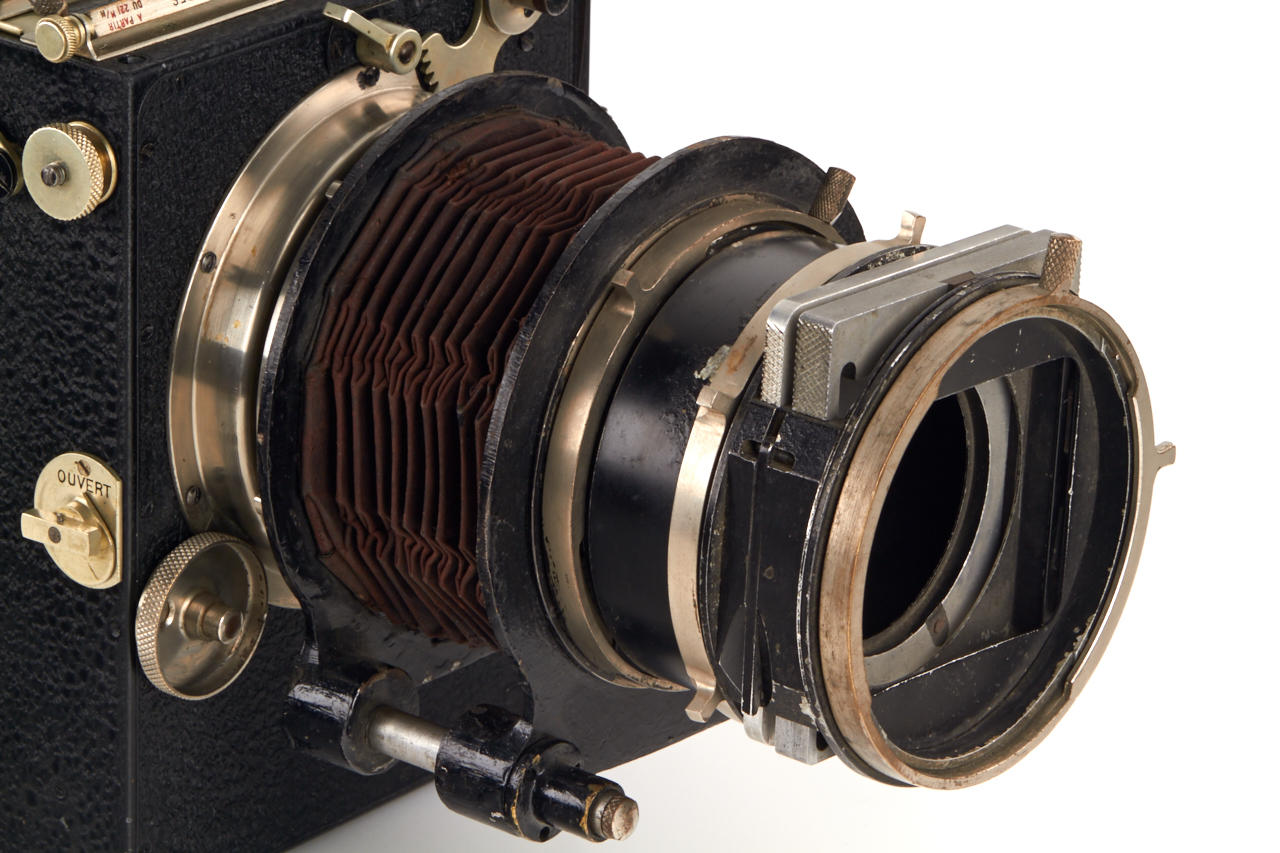 professional hand-cranked 35mm motion picture camera, outfit with one Kinoptik 2/50mm no.21413 and seven sought after, high quality Kinoptik Apochromat f.2 lenses: 25mm, 28mm, 35mm, 40mm, 50mm, 75mm and 100mm, all lenses in good condition with clean optics, all Apochromat lenses with maker's boxes, the set also includes wooden carrying cases for the camera and for the lenses, two film spools, two cranks and hood with filter slots