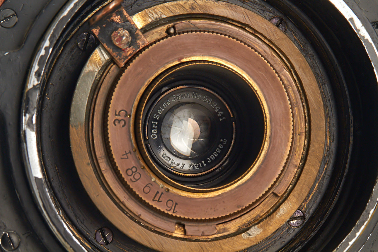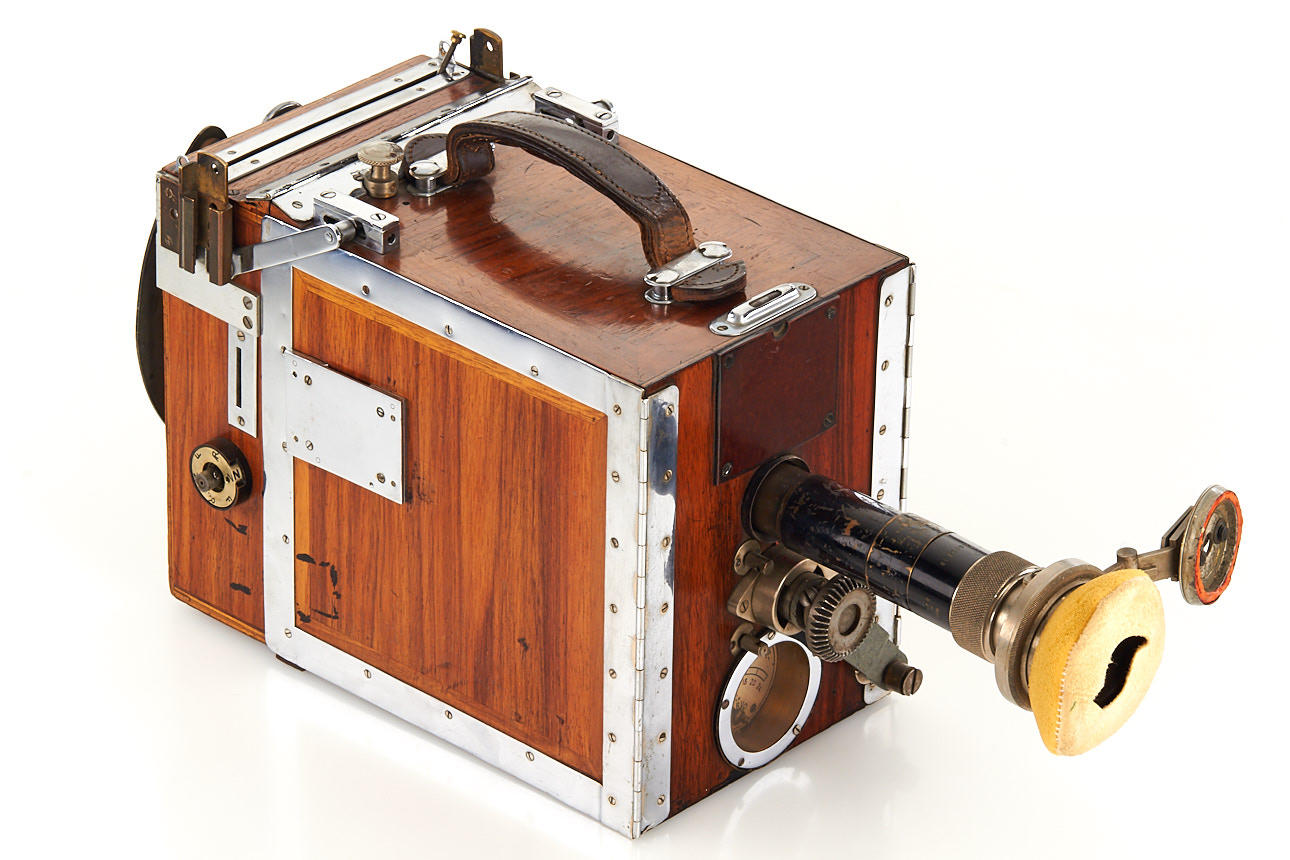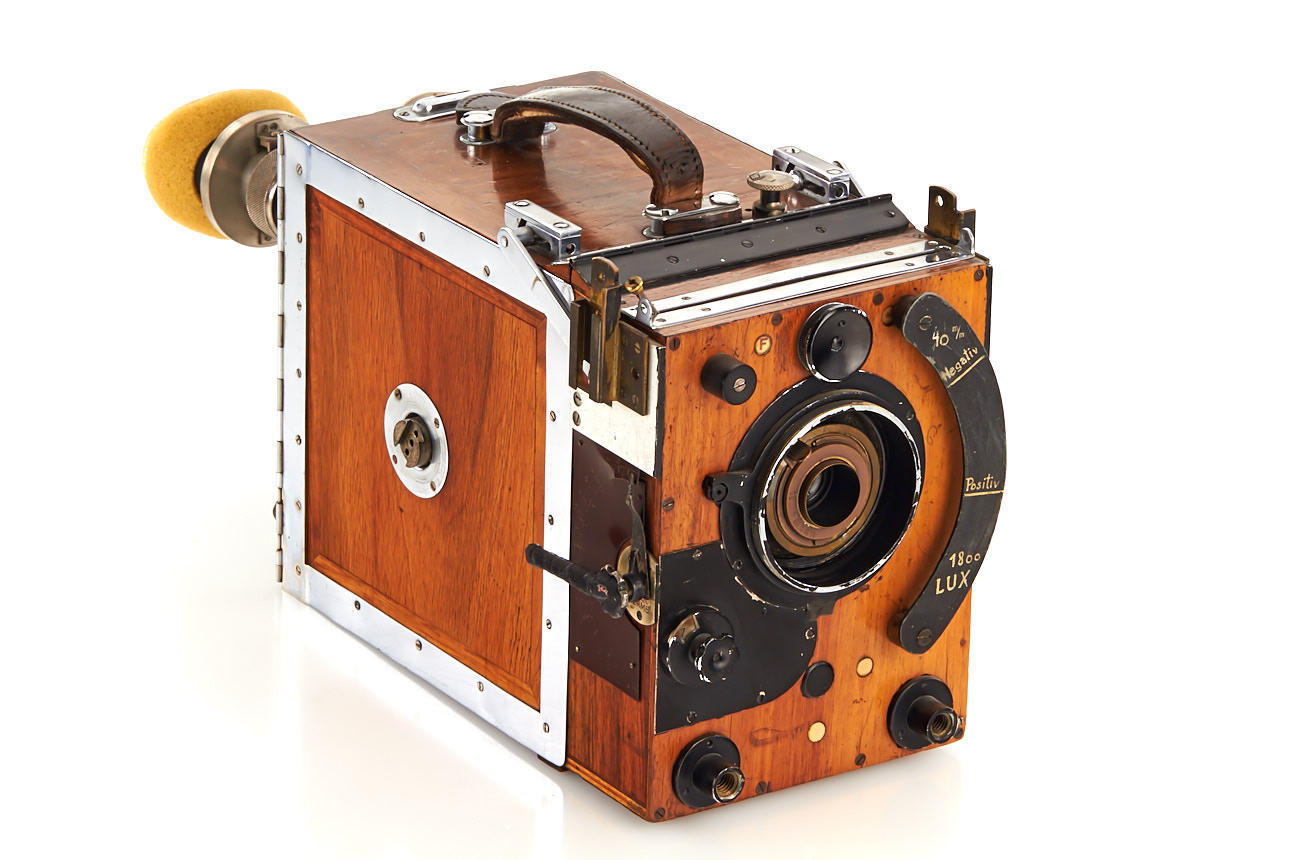 historic professional 35mm motion picture camera, attractive tropical version finished in wood, in very fine condition, with Tessar 3.5/4cm no.532441