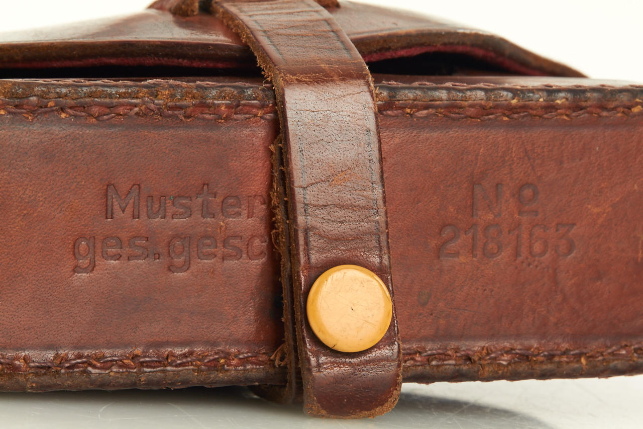rare everready case in very good condition, with strap, stamped 'Muster ges.gesch.No.218163' on bottom (see von Einem 'Die 10 Varianten der klassischen Leica I A mit Elmar 1:3.5 F=50mm' page 5o for a similar case)