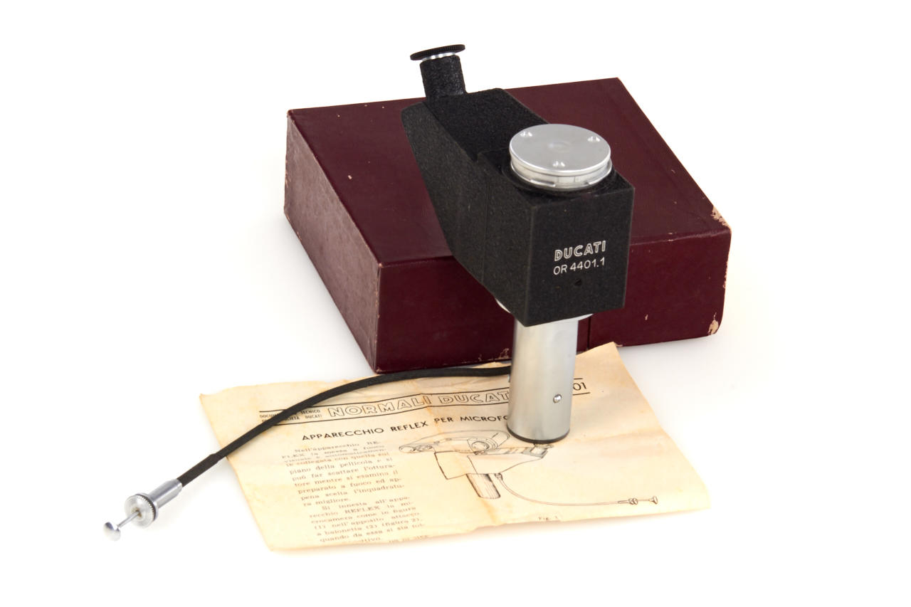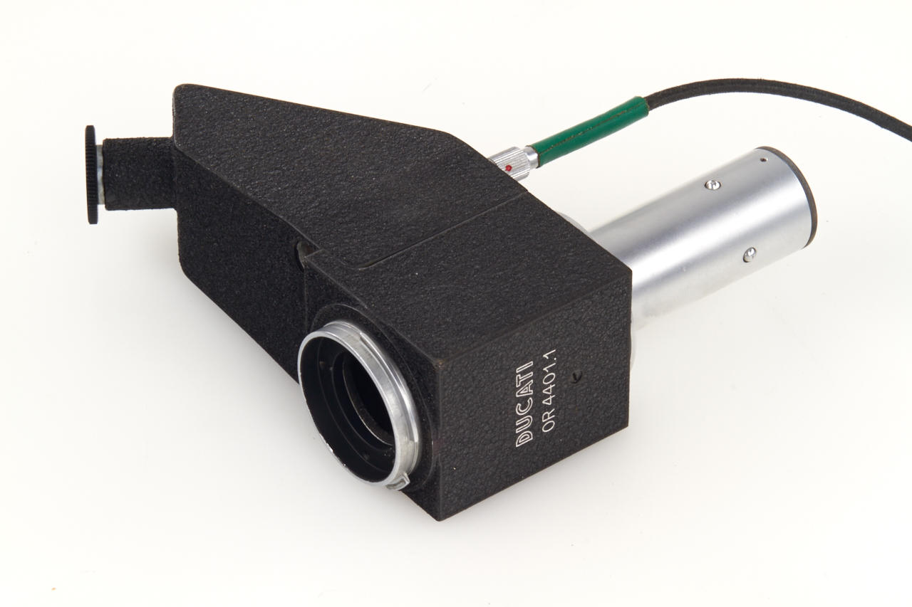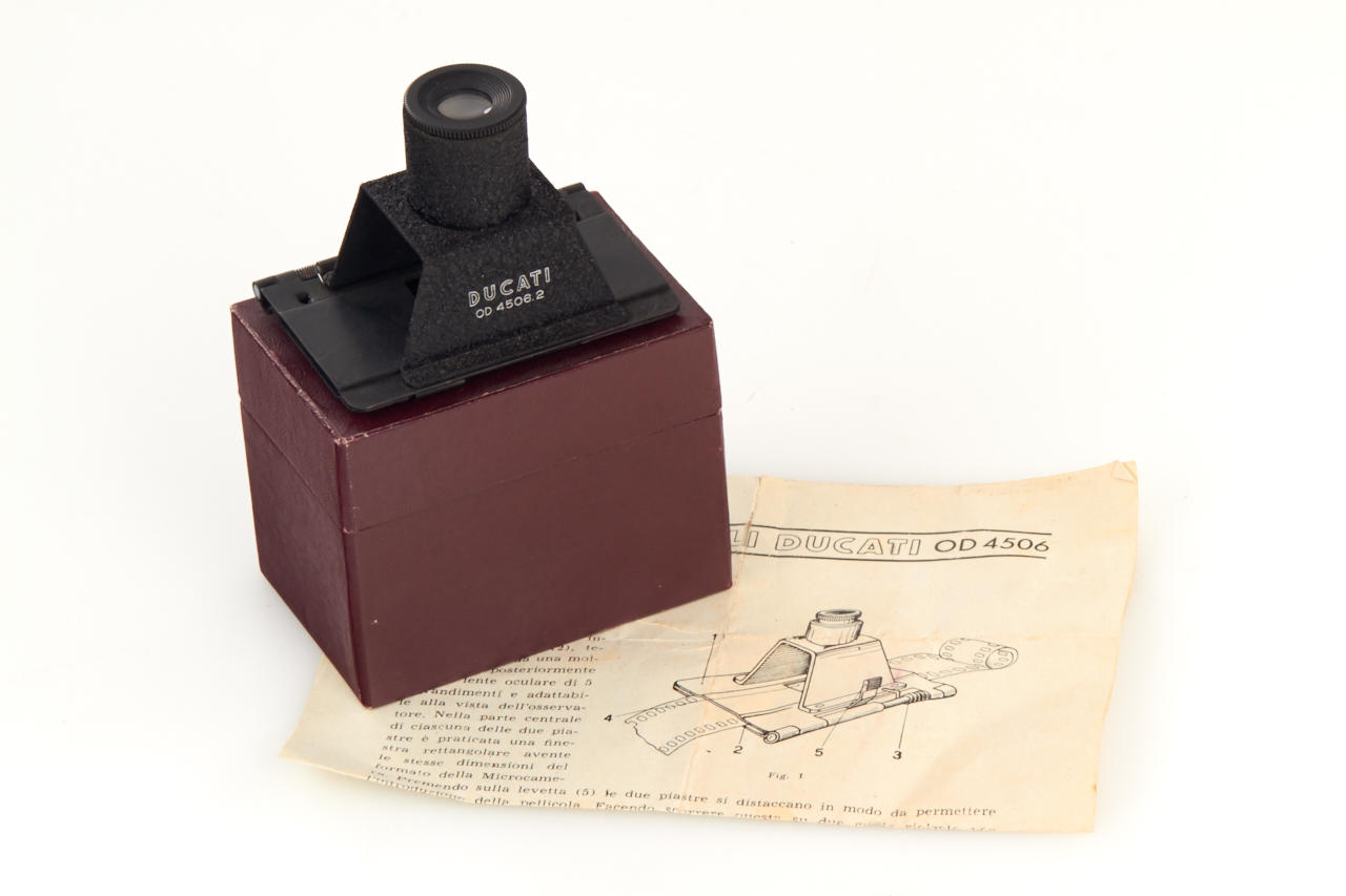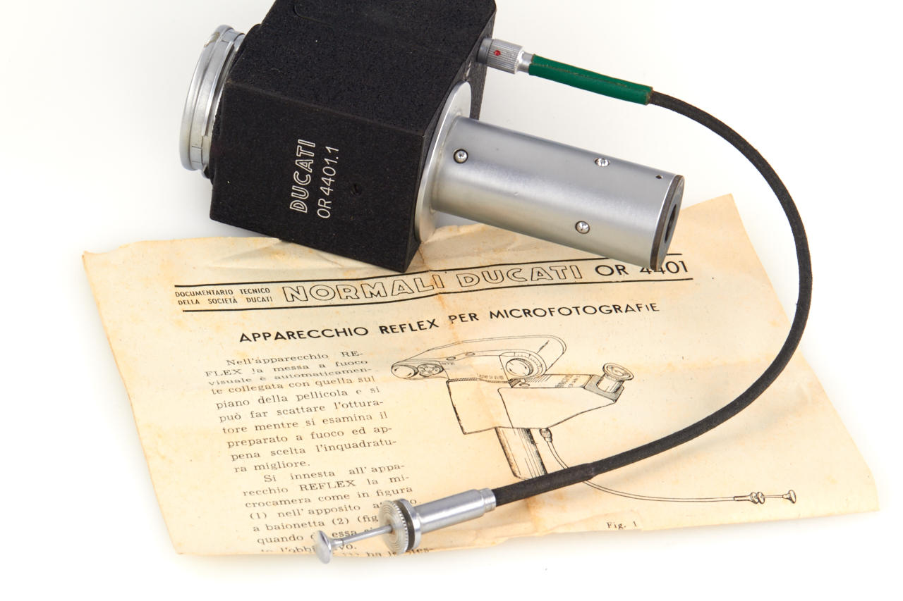 (1) Reflex Housing OR 4401 for Microphotography, complete with cap, cable release, instructions, red maker's box (near mint), (2) Film Loader OI 7202.1, mint with instructions and maker's box, (3) Film Loader OI 7205.1, mint with maker's box, (4) rare Negative Viewer OD 4506.2, mint with instructions and maker's box, (5) very rare Round Shot Tripod SH 6442.1 with maker's box, (6) Copy Stand SH 6440, mint and complete with close focus lenses OD 4401.1 + 4401.2, instructions, maker's box