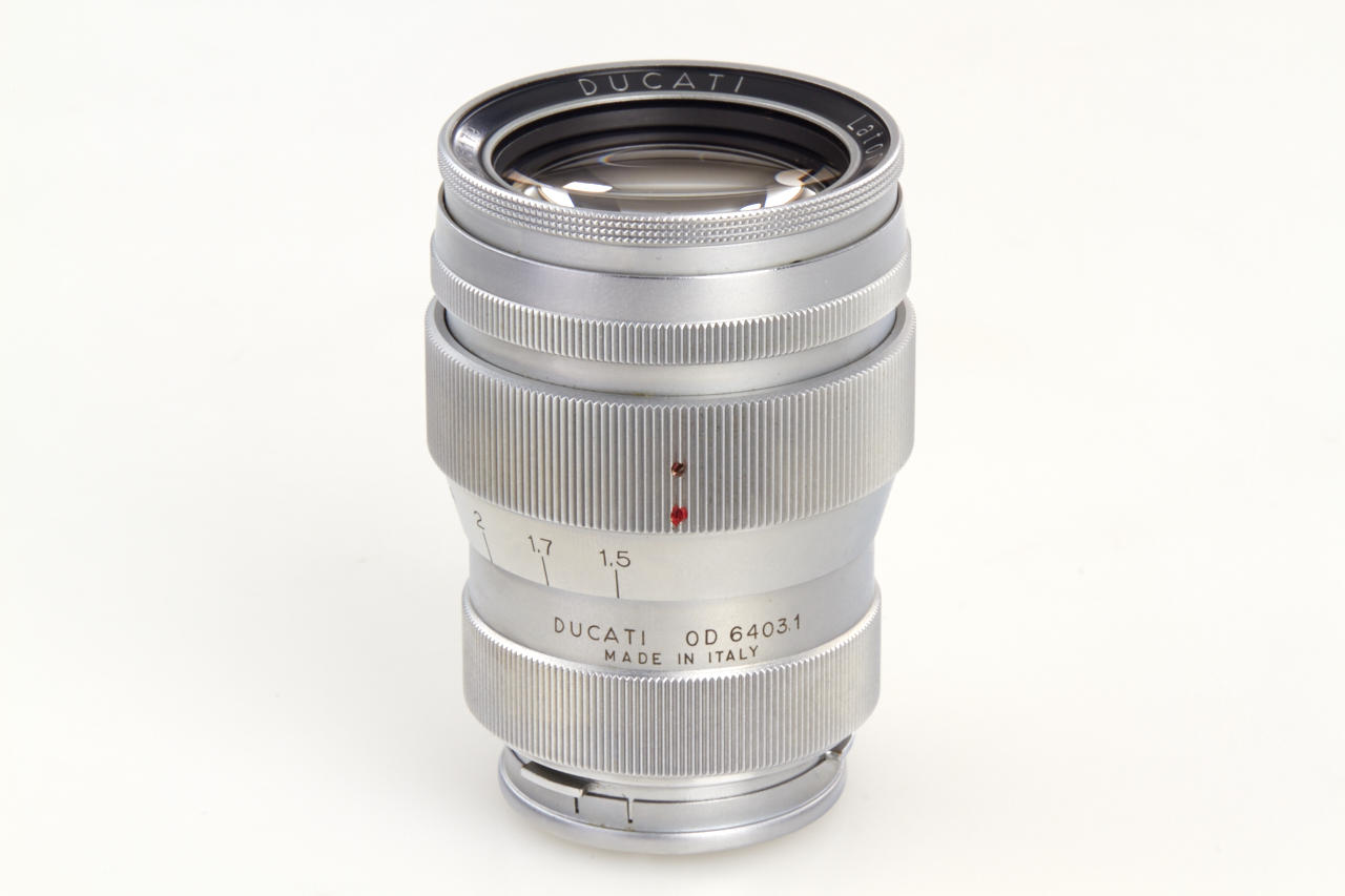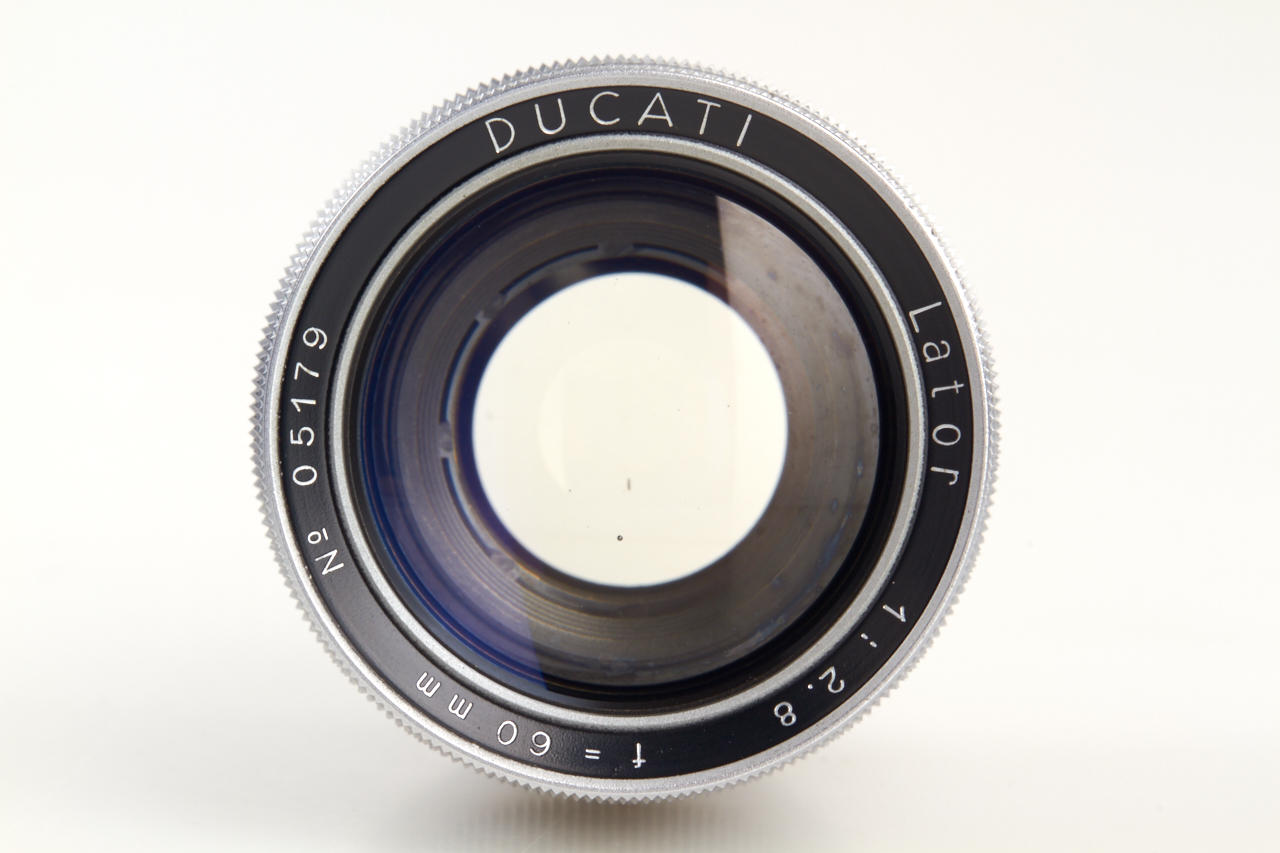 rare tele lens OD 6403.1 for Ducati, heavy brass mount version, in very fine condition with both caps and very rare finder mask f=60 and filter OF 2401.II in un-opened maker's box