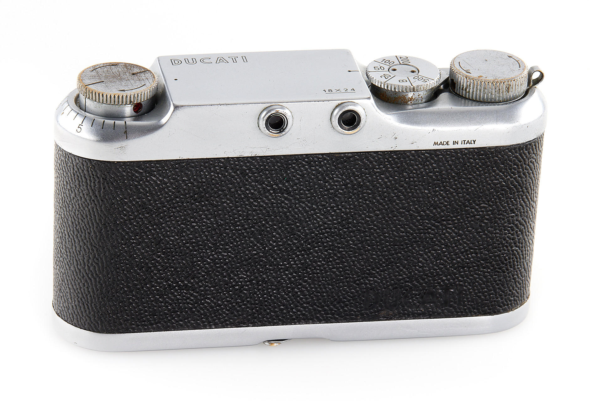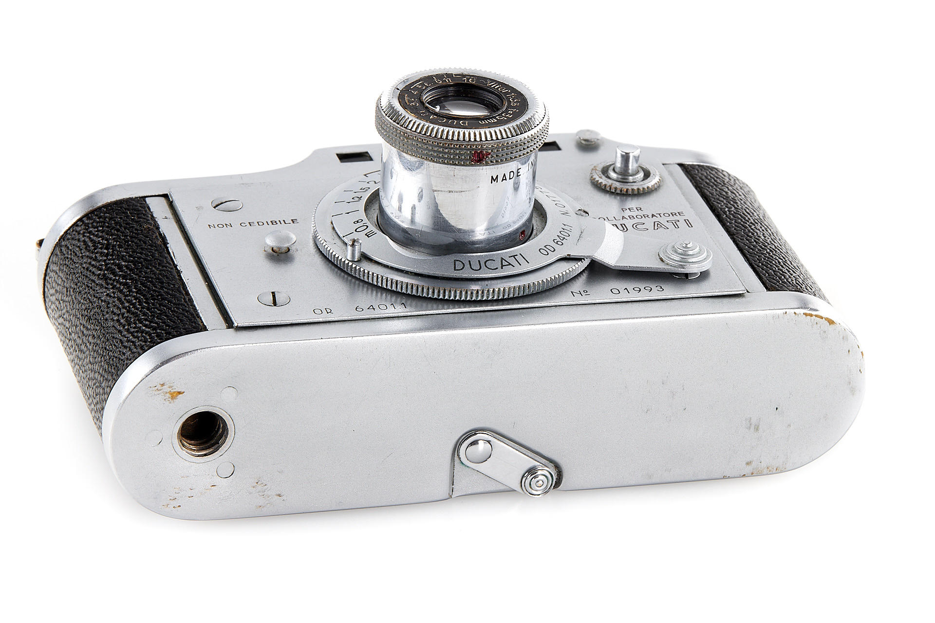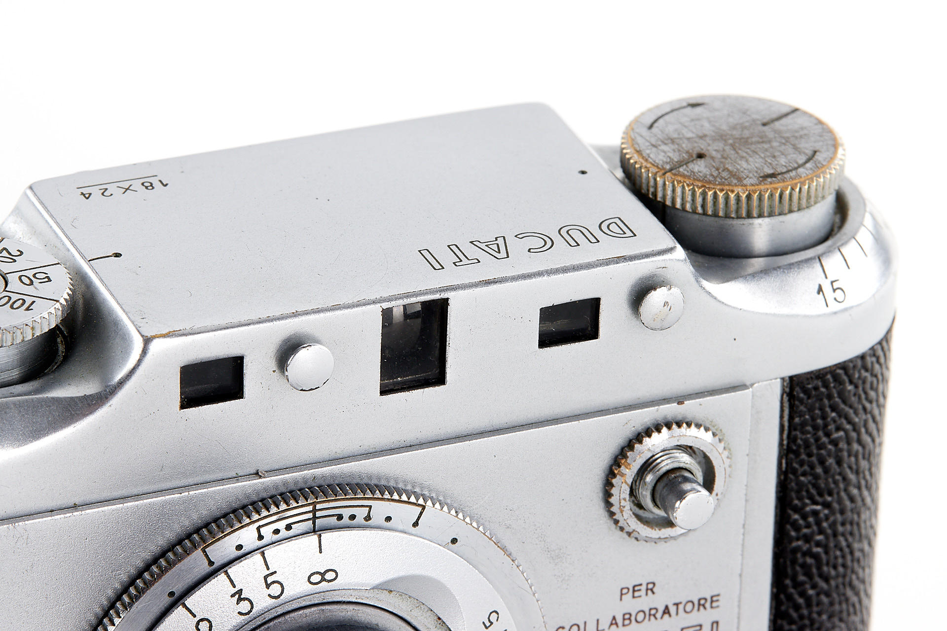 Very rare and early 18x24 Italian camera engraved 'PER COLLABORATORE' (for employees) and 'NON CEDIBILE' (not assignable), limited production of a few hundred pieces for Ducati employees, in very good cosmetic condition, with Vitor 3.5/35mm no.01775, with original cap