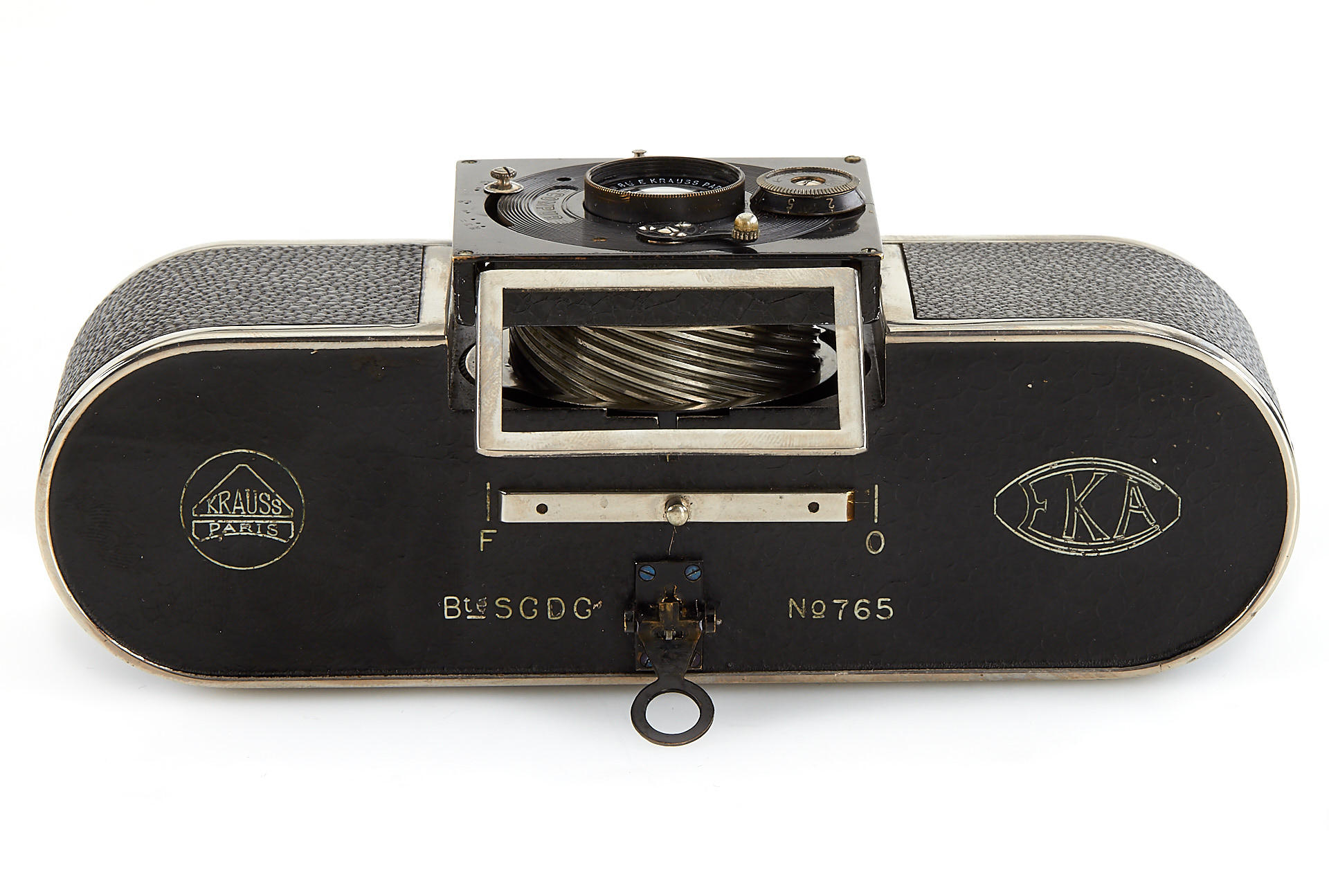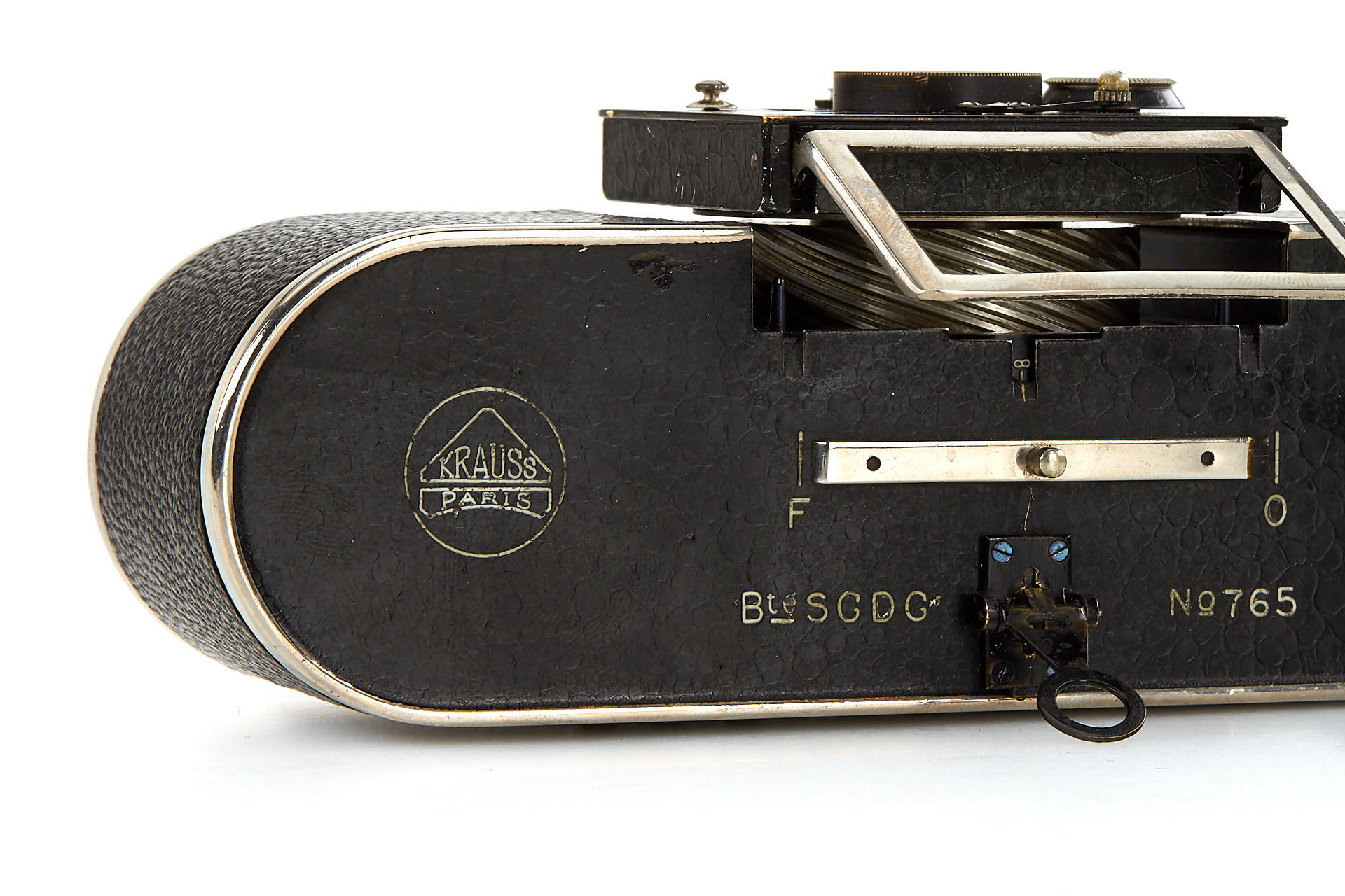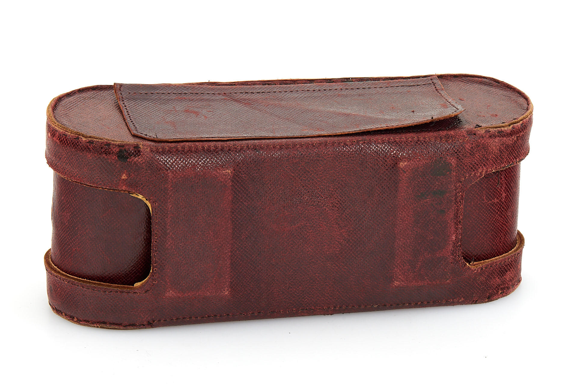 Leica forerunner for 100 exposures 35x24mm on unperforated 35mm film, in excellent condition, with Krauss Zeiss Tessar 3.5/50mm no.154196 in Compur shutter, leather case