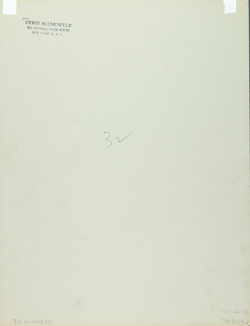 Vintage silver print, mounted on original cardboard 27,9 x 35,6 cm Photographer’s “Erwin Blumenfeld, 222 Central Park South New York, 19. N.Y.” stamp on the reverse PROVENANCE Collection Kaspar M. Fleischmann