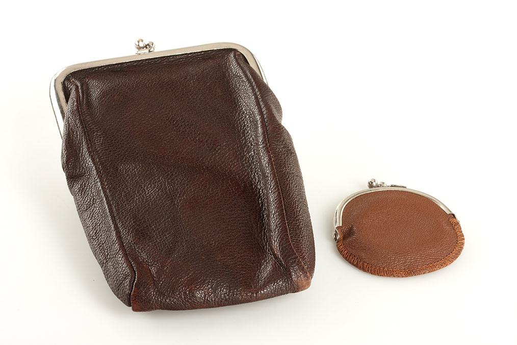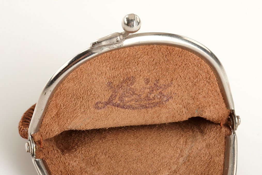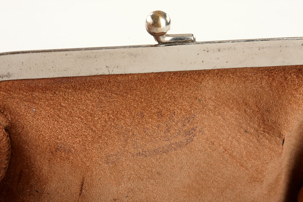 rare morocco leather case for early Leica I Mod. A with nickel clasp, stamped inside 'Leitz', leather filter purse, stamped inside 'Leitz'
