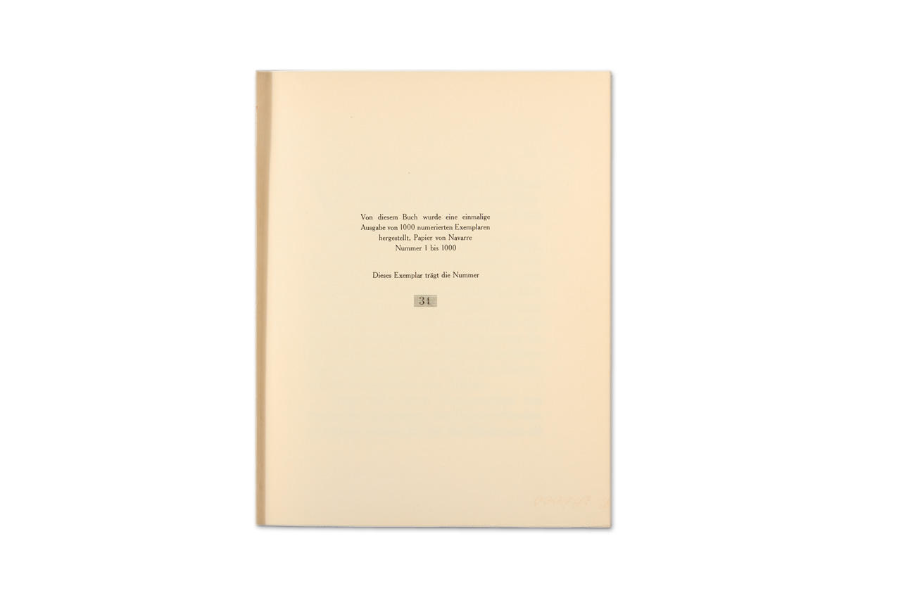 First German edition, limited to 1000 copies, this is No. 31/1000, hardcover with full gray cloth, 27,2 x 21,2 cm, printed in photogravure by Kreysing/Leipzig, fold-out printed list of picture titles taped to inside rear cover