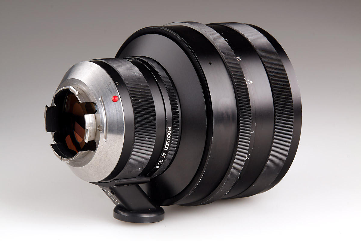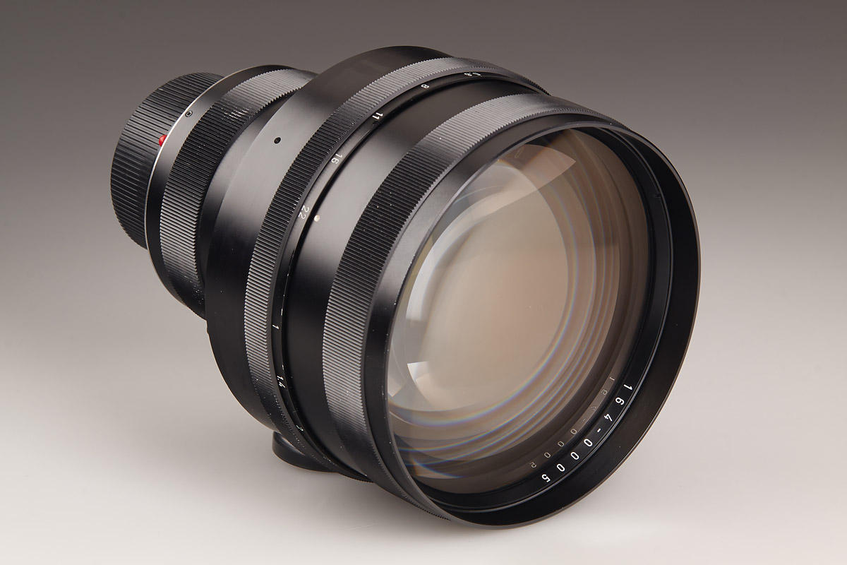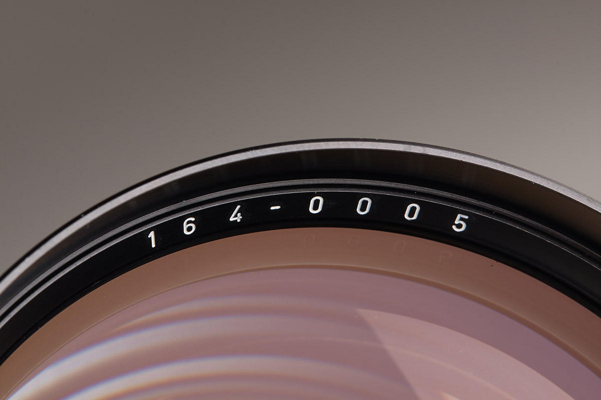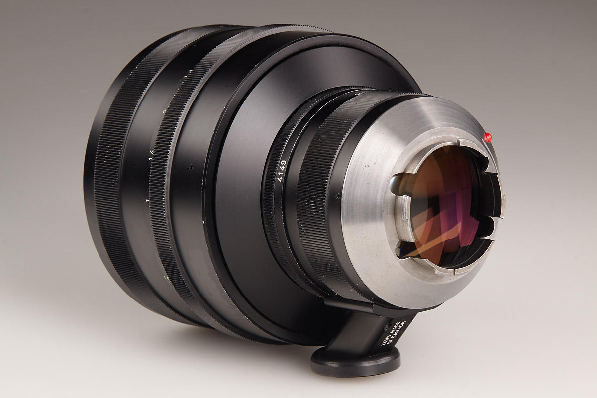Extremely rare lens with clean optics and complete with all four distance rings (4457 for infinity, 4149 for 100 m, 4149 for 50 m and 4149 for 20 m) Leitz Canada’s lens design legend Dr. Walter Mandler was not only responsible for lenses such as the famous 50 mm Noctilux f/1.0 or the 180 mm APO-Telyt f/3.4, but also for bathbreaking lens designs which were done on military order. The 90 mm Elcan-M f/1.0 lens (C164) is doubtlessly the most stunning Leica lens designed by Dr. Mandler and made by Leitz Canada for the U.S. Navy. With its impressivelylarge diameter front element it has a wider front than a 560 mm Telyt f/6.8 lens, for example. The lens was designed as a fixed-focus system, with setting rings for different focal distances. It is believed that only ten pieces of the 90 mm Elcan have been completed, of which the one offered here is lens number 5. Dr. Walter Mandler gilt als Legende unter den Optikrechnern. Bei Leitz Canada war er nicht nur verantwortlich für berühmte Objektive wie das Noctilux 1:1,0/50 mm oder das APO-Telyt 1:3,4/180 mm, sondern auch für bahnbrechende Objektiventwicklungen auf dem Gebiet der Militäroptiken. Bei dem Elcan-M 1:1,0/90 mm handelt es sich zweifelsfrei um das atemberaubendste Leica Objektiv, das von Dr. Mandler für die U.S. Marine entwickelt und bei Leitz Canada gefertigt wurde. Mit seiner eindrucksvoll großen Frontlinse hat es eine größere Eintrittspupille als beispielsweise ein Telyt 1:6,8/560 mm. Das Objektiv ist als fix-Focus Konstruktion konzipiert, wobei spezielle Distanzringe für bestimmte Aufnahmeentfernungen verwendet werden mussten. Man geht heute davon aus, dass nur zehn solcher Objektive überhaupt fertiggestellt wurden, wobei es sich bei dem hier angebotenen Exemplar um das fünfte Objektive dieser Serie handelt.