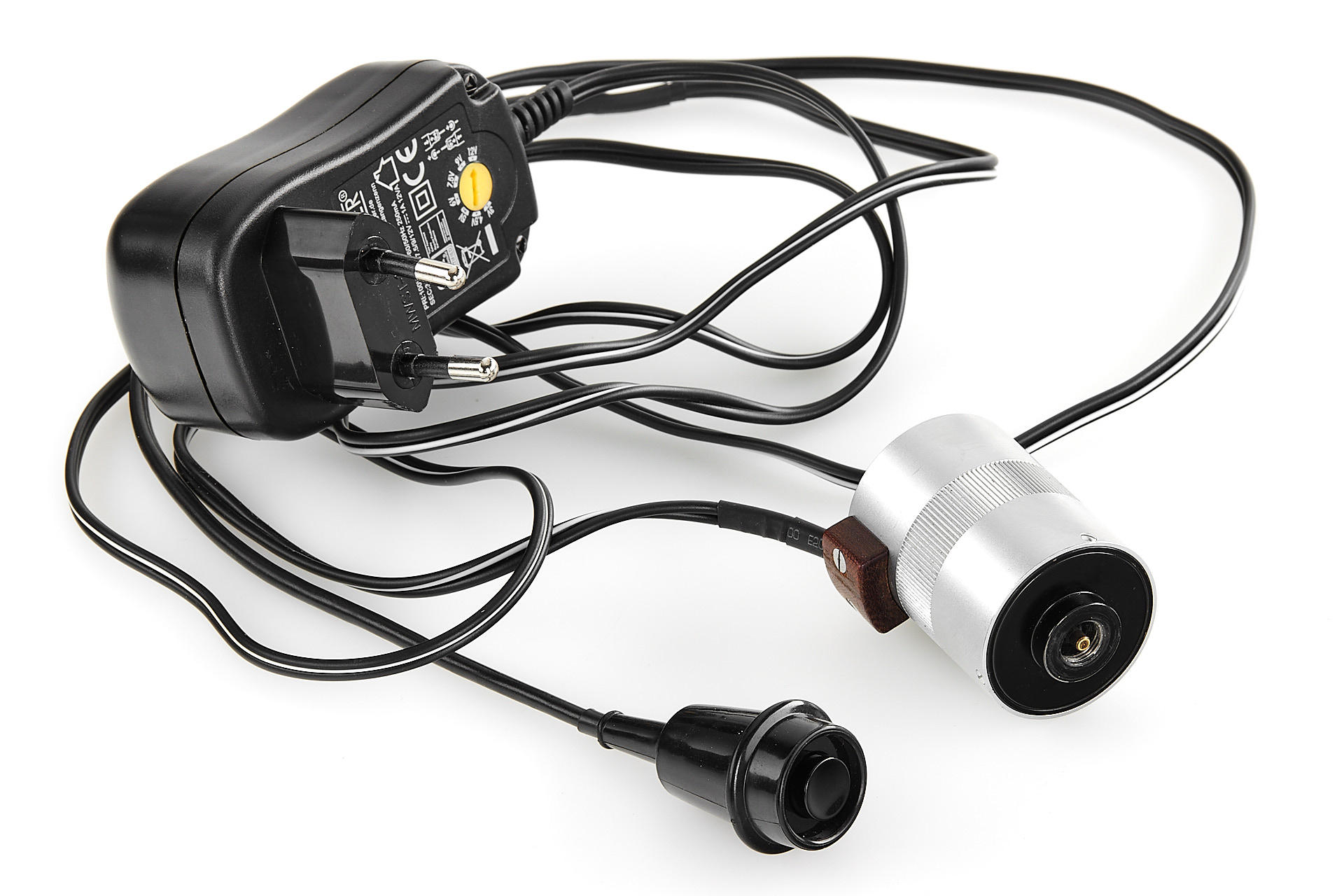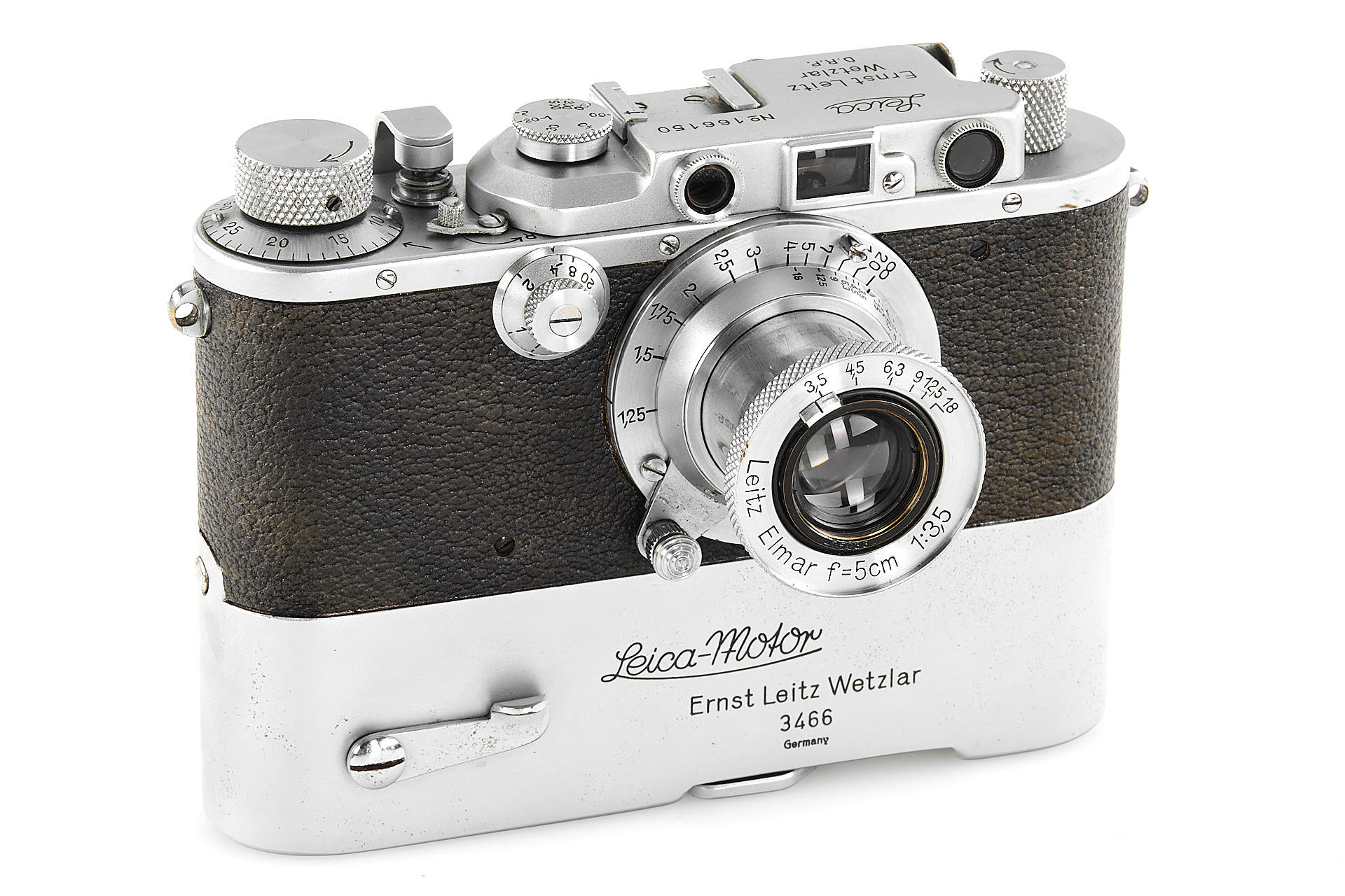 an interesting prototype electric release for Leica-Motor, in excellent condition and good working order, for testing purposes rewired with a new cable and AC adapter, including a perfectly working Leica-Motor MOOLY no.3466, Leica III body no.166150 and chrome Elmar 3.5/5cm no.475033