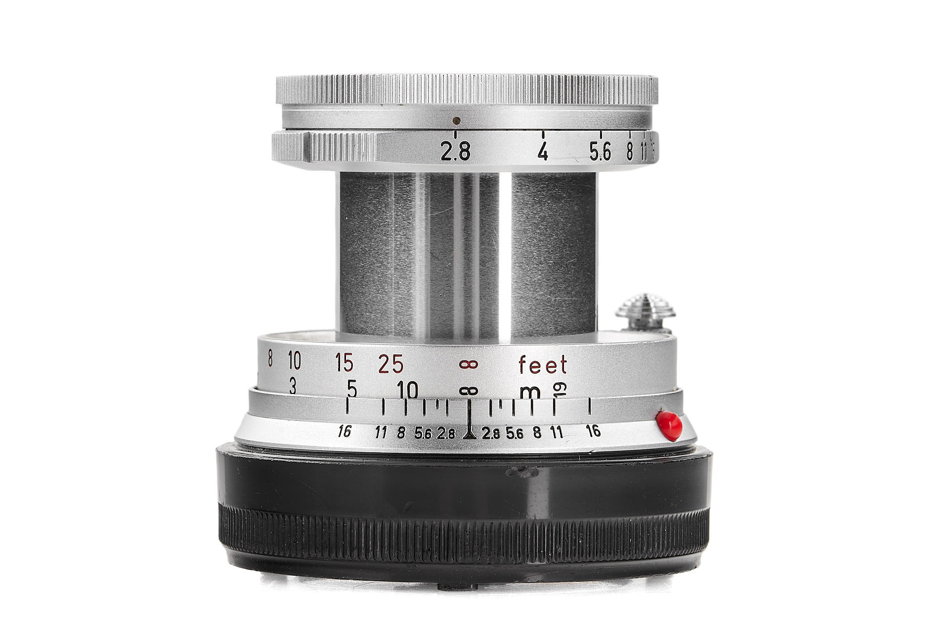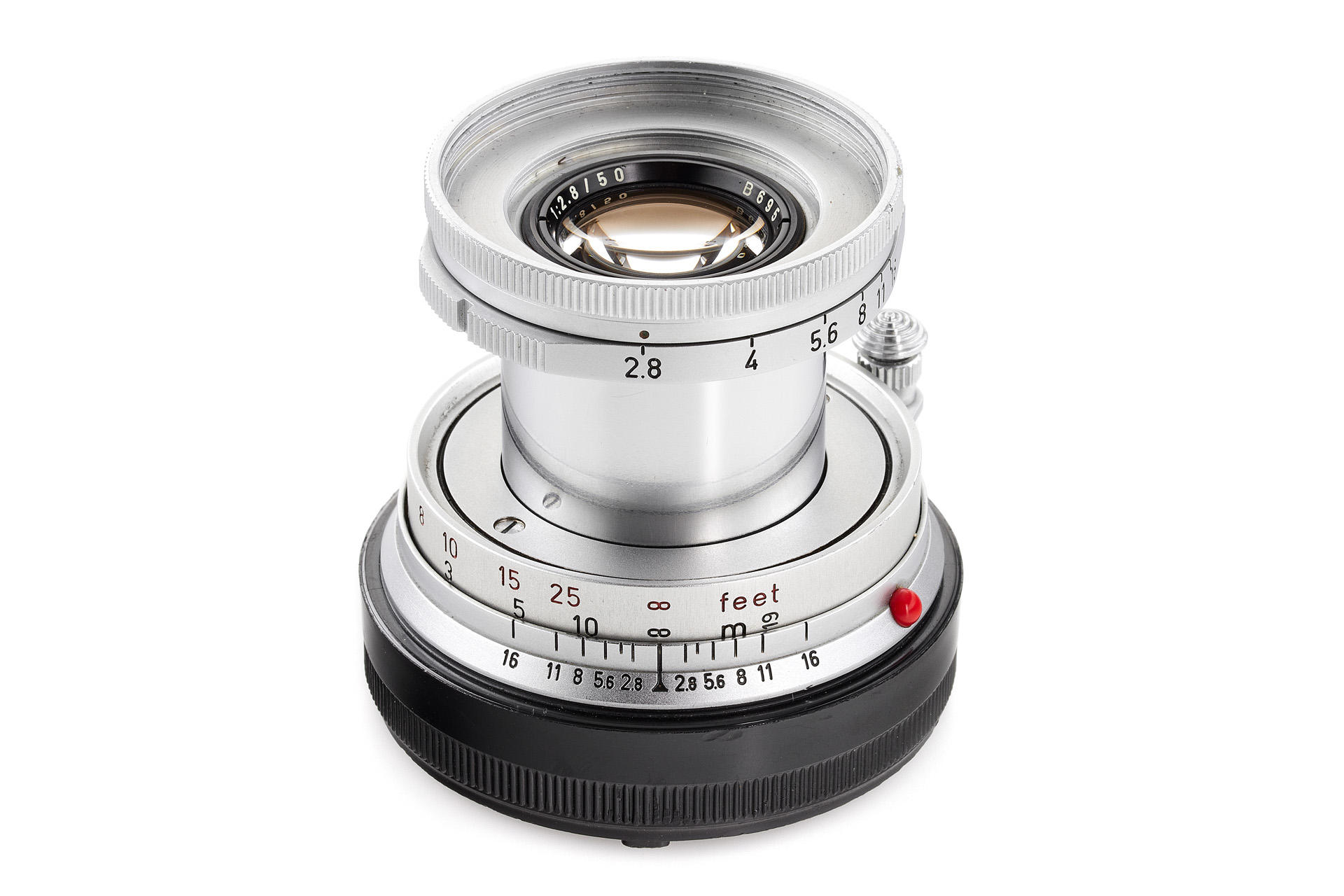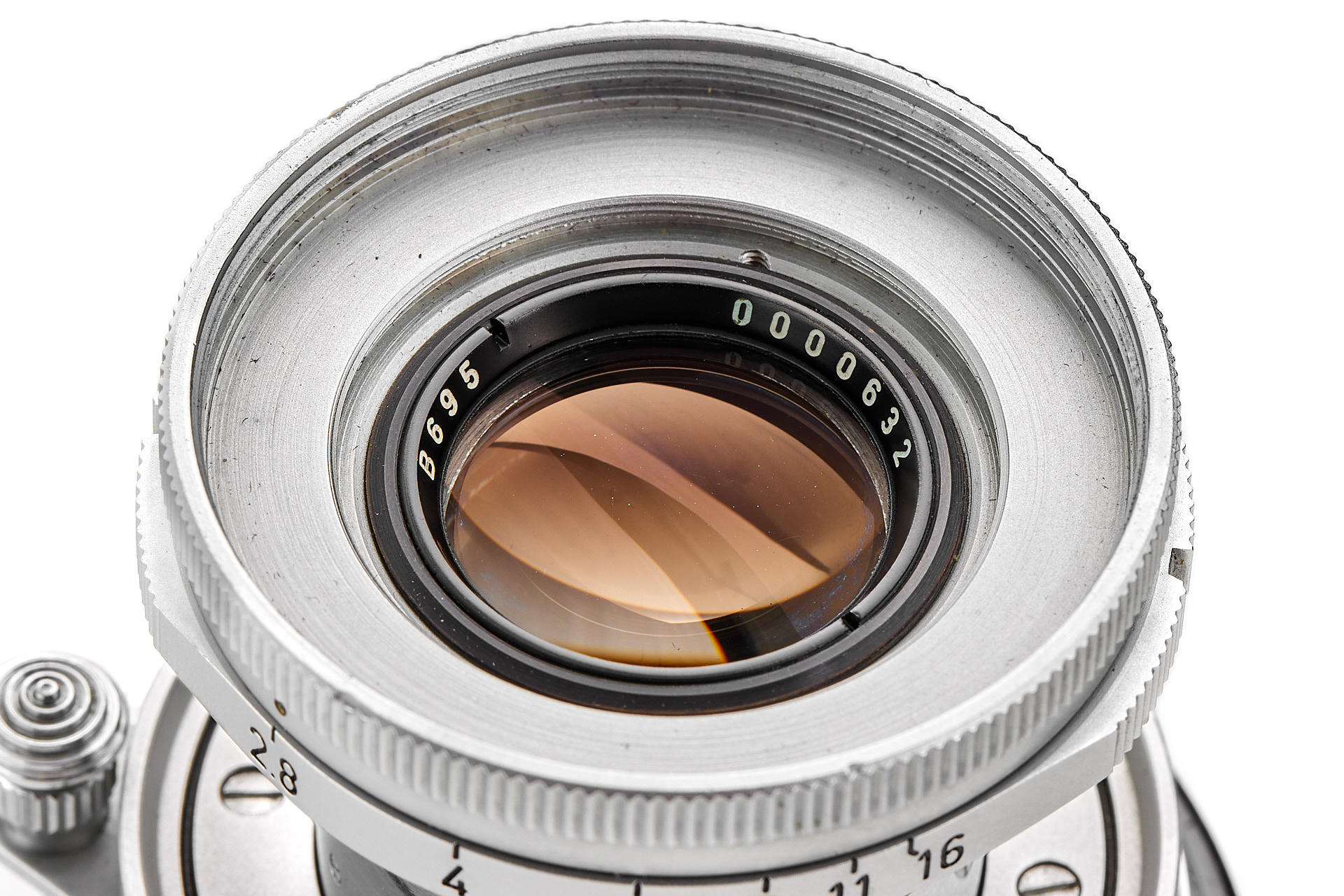 an interesting and very rare prototype of the collapsible Elmar 5cm, engraved on the lens' mounting ring with optical formula B695 and with special prototype serial number 0000632, in beautiful condition and with clean optics