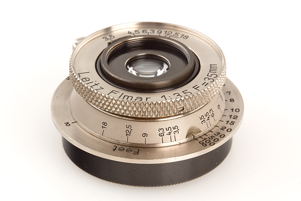 very rare un-numbered nickel Elmar with focusing mount to 1.5 Feet, for IC with standard mount, clean lenses (caps), red 'EKURZ' maker's box