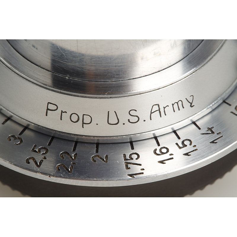 rare coated Elmar delivered to the U.S. Army, barrel engraved 'Prop. U.S. Army', both caps