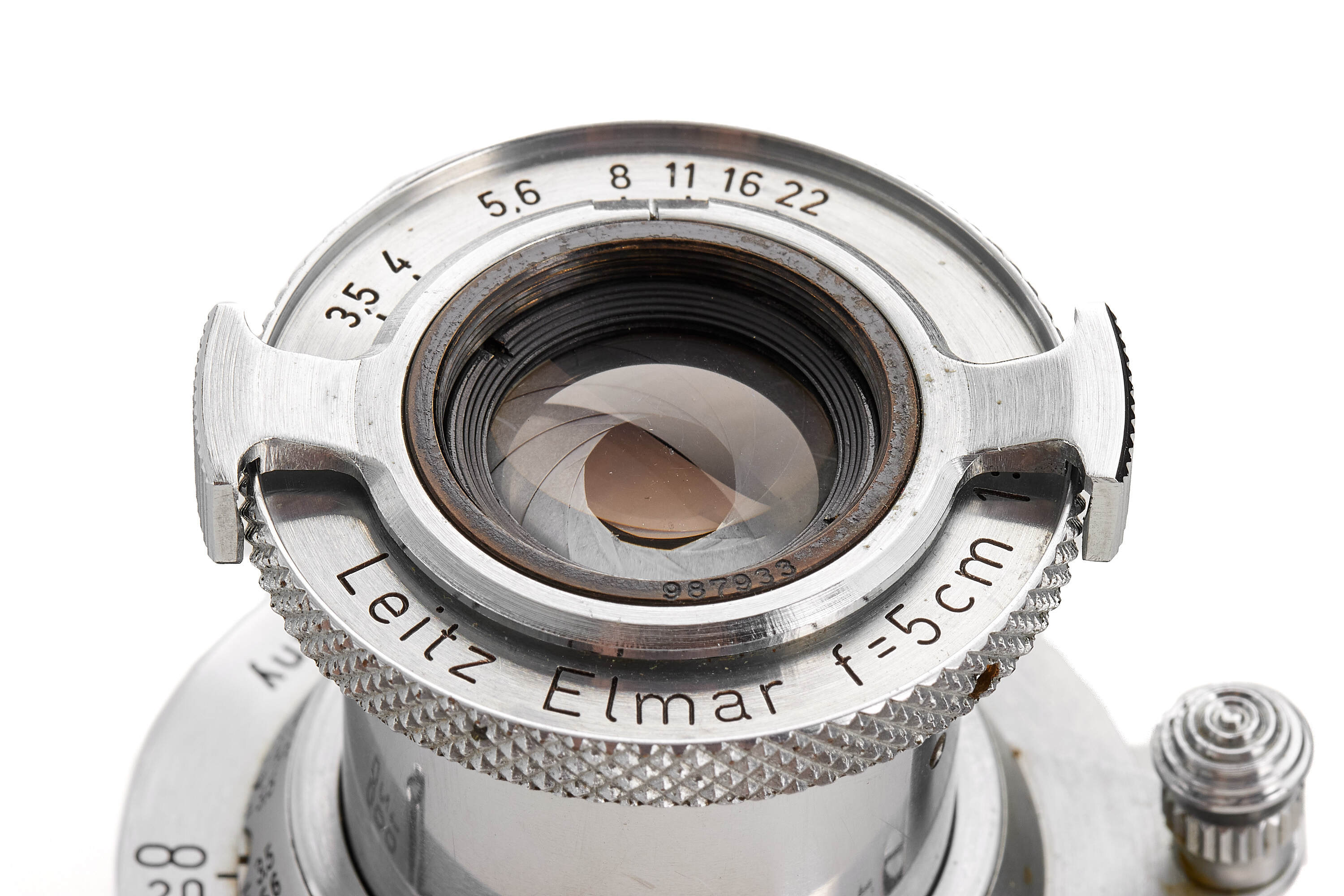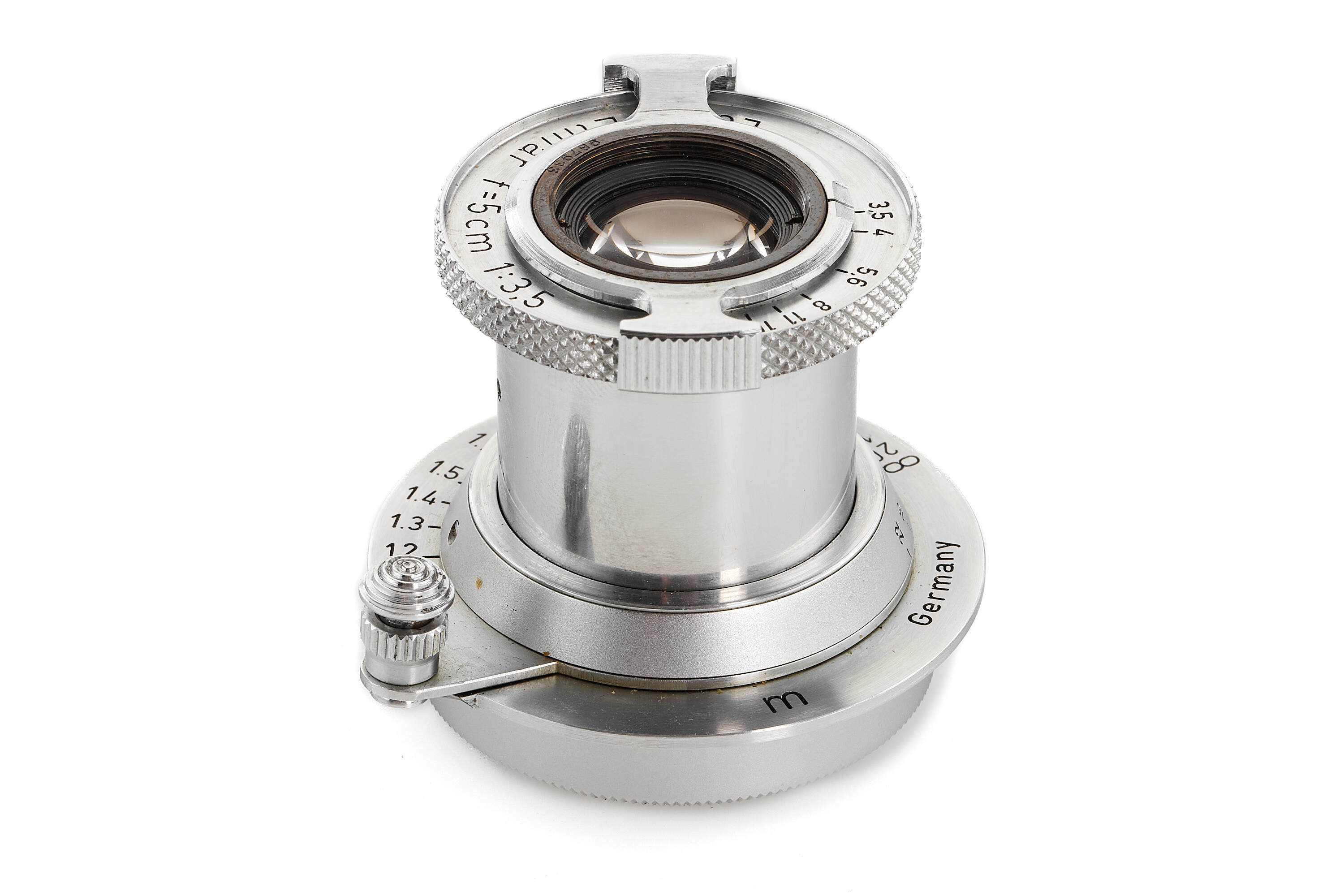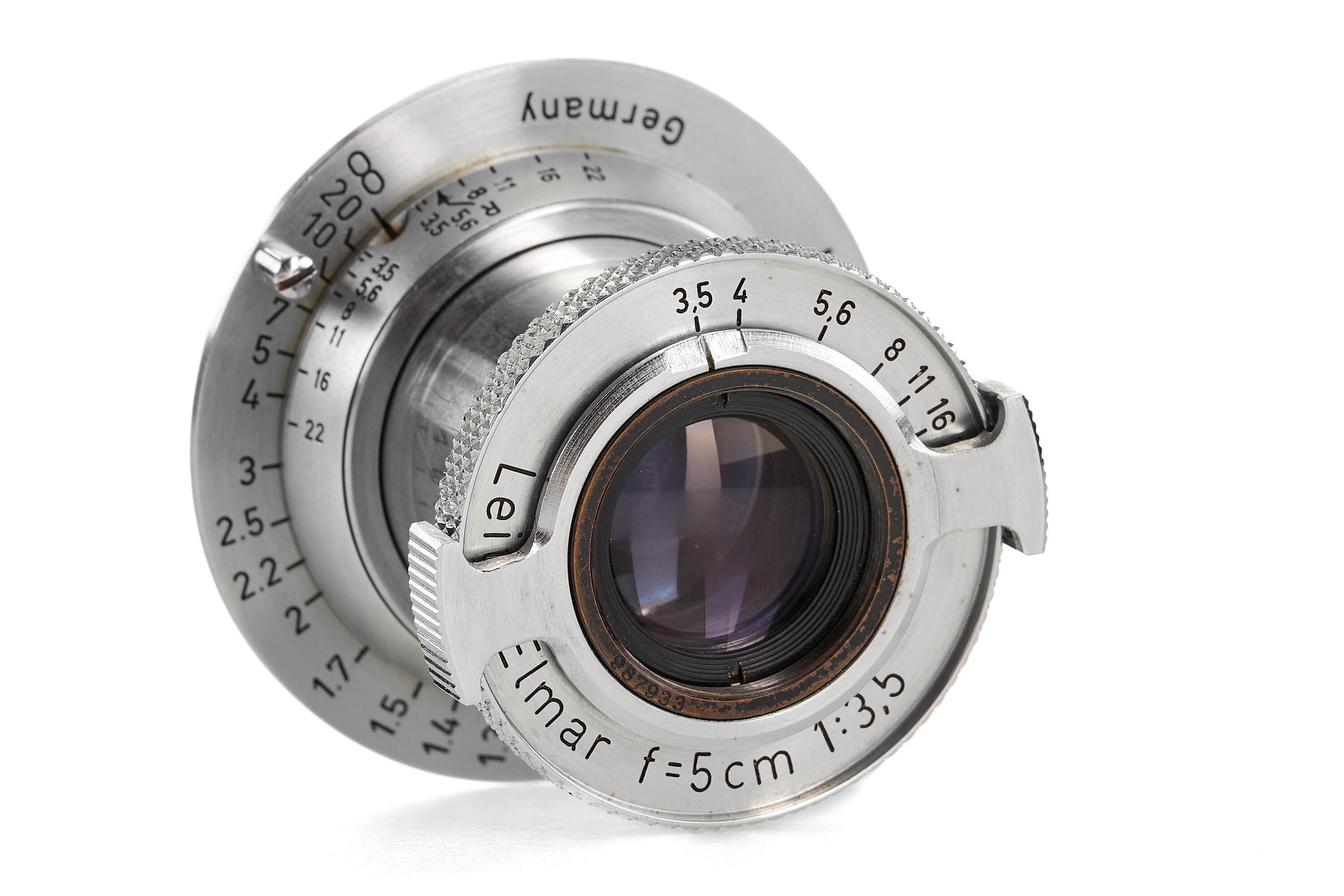 A unique prototype Elmar 5 cm lens from 1952, featuring a distinctive aperture control. The lens is in near-mint condition with very good optics. A comparable example was sold in our 37th auction.