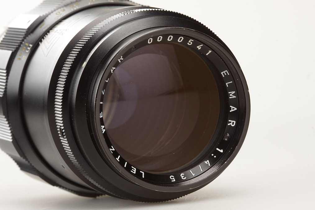 very rare prototype Tele-Elmar, front ring engraved: Elmar 1:4/135 Leitz Wetzlar 0000541, white plastic rear cap, front cap