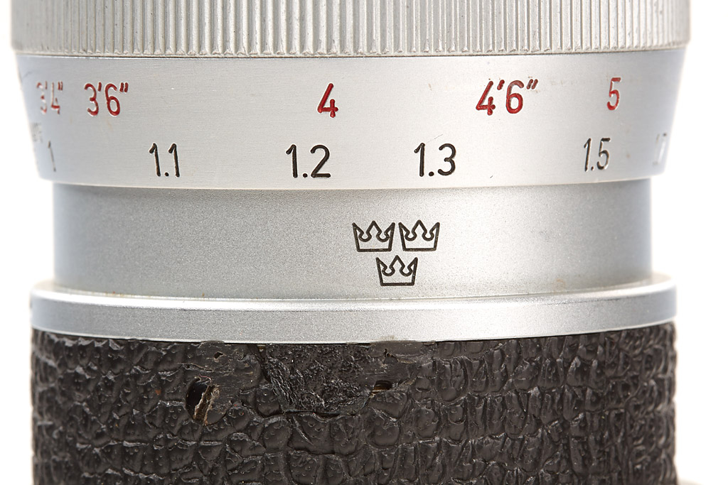 rare lens for Swedish Army for use with IIIg black, in original condition, engraved with 'Three Crowns', caps