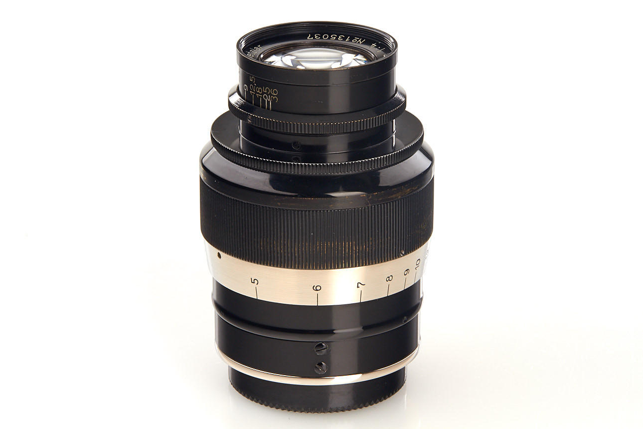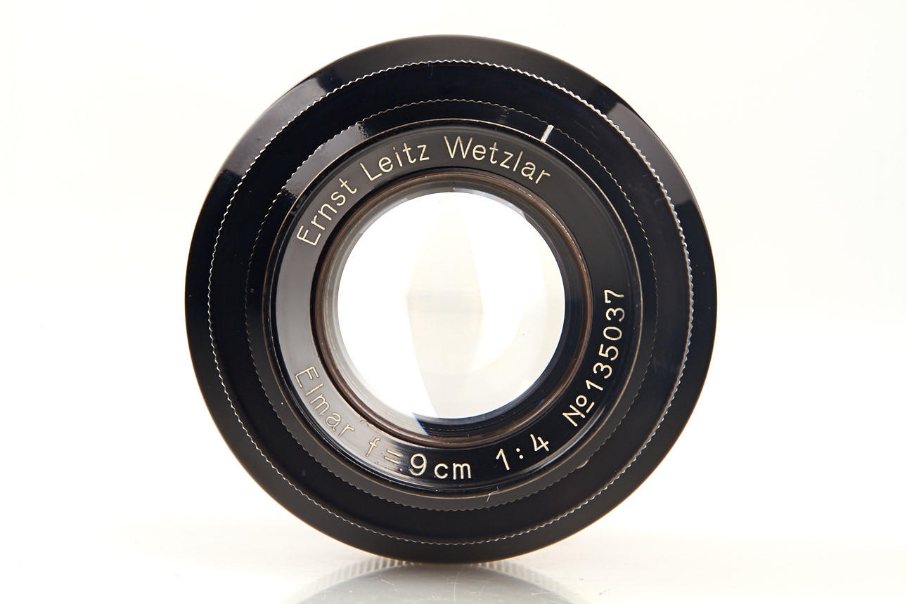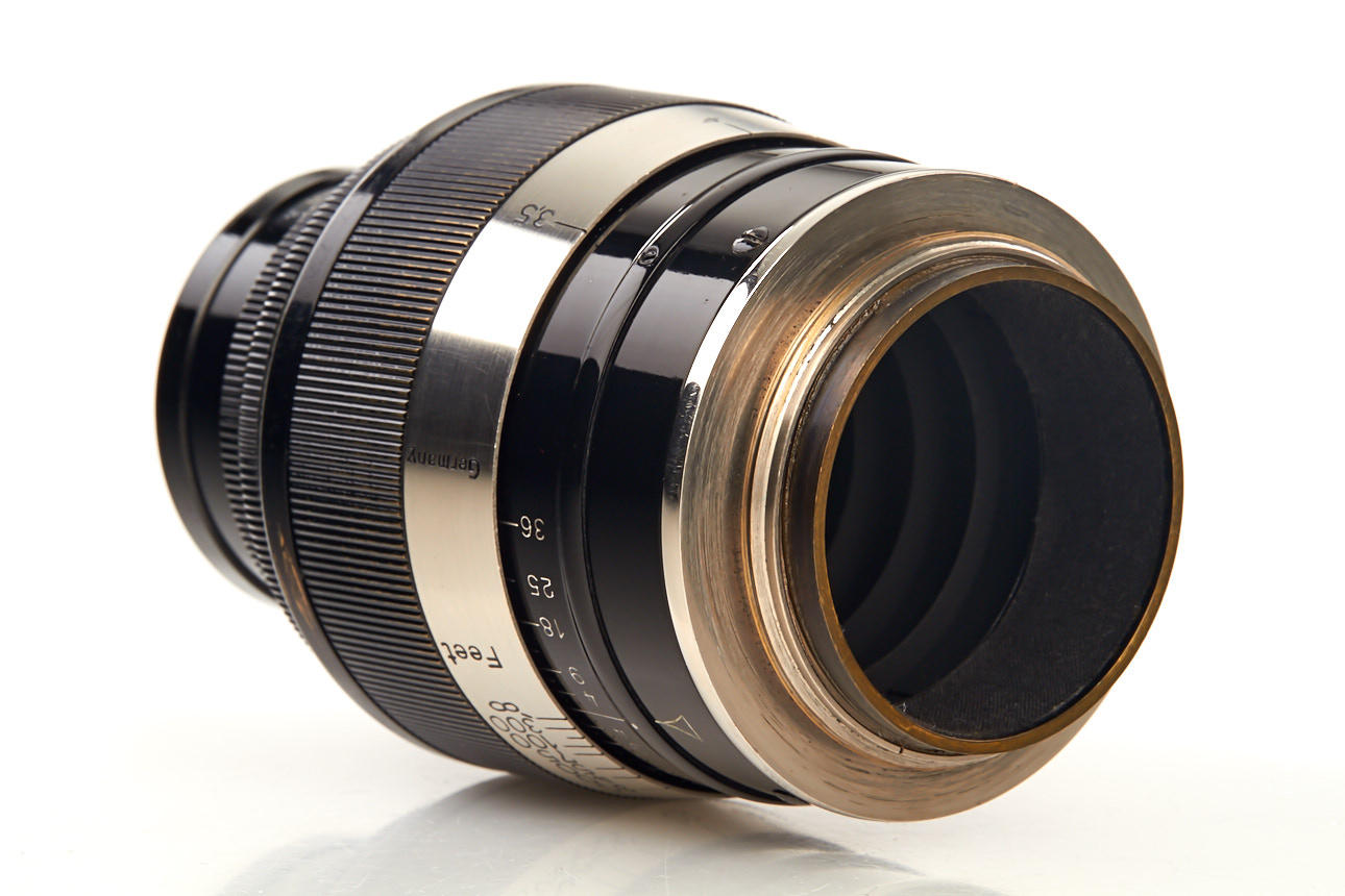 fat' Elmar in black/nickel finish, in excellent condition (only minimal signs of wear on focusing ring), with original front and rear cap