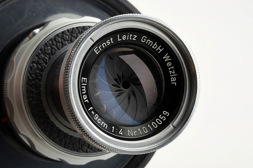 pre-production collapsible Elmar 9cm with black front ring and painted red dot from a small batch of approx. 50 lenses, in near mint condition with keeper