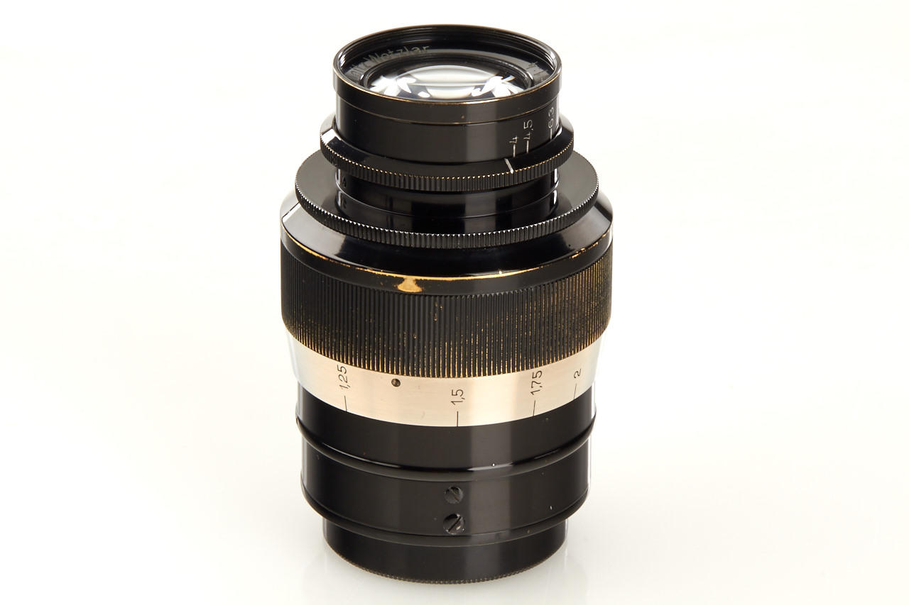 early unnumbered 'fat' Elmar in black/nickel finish, rare uncoupled version, with matching front and rear cap