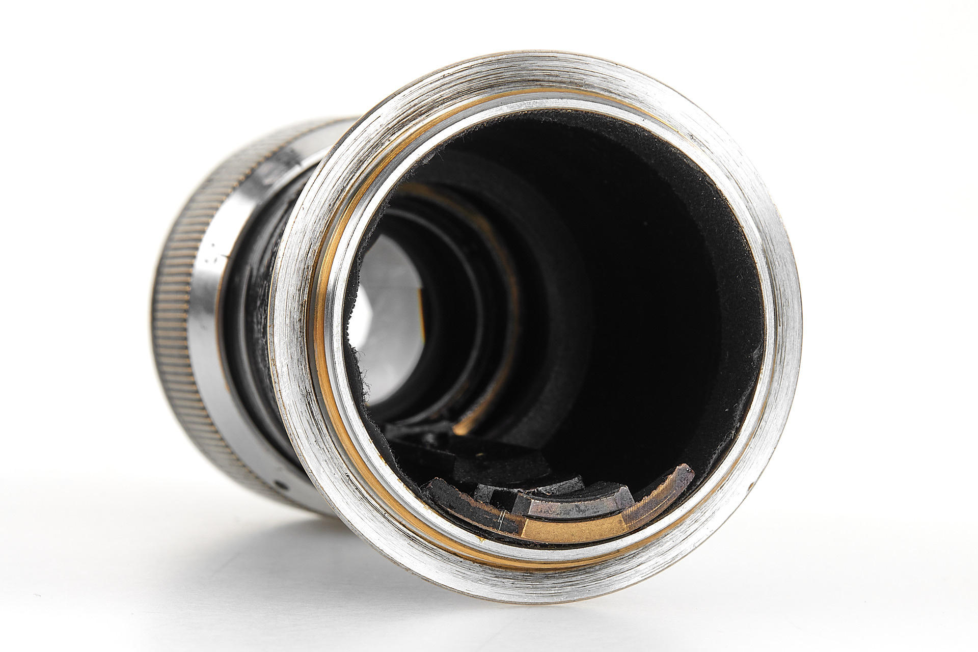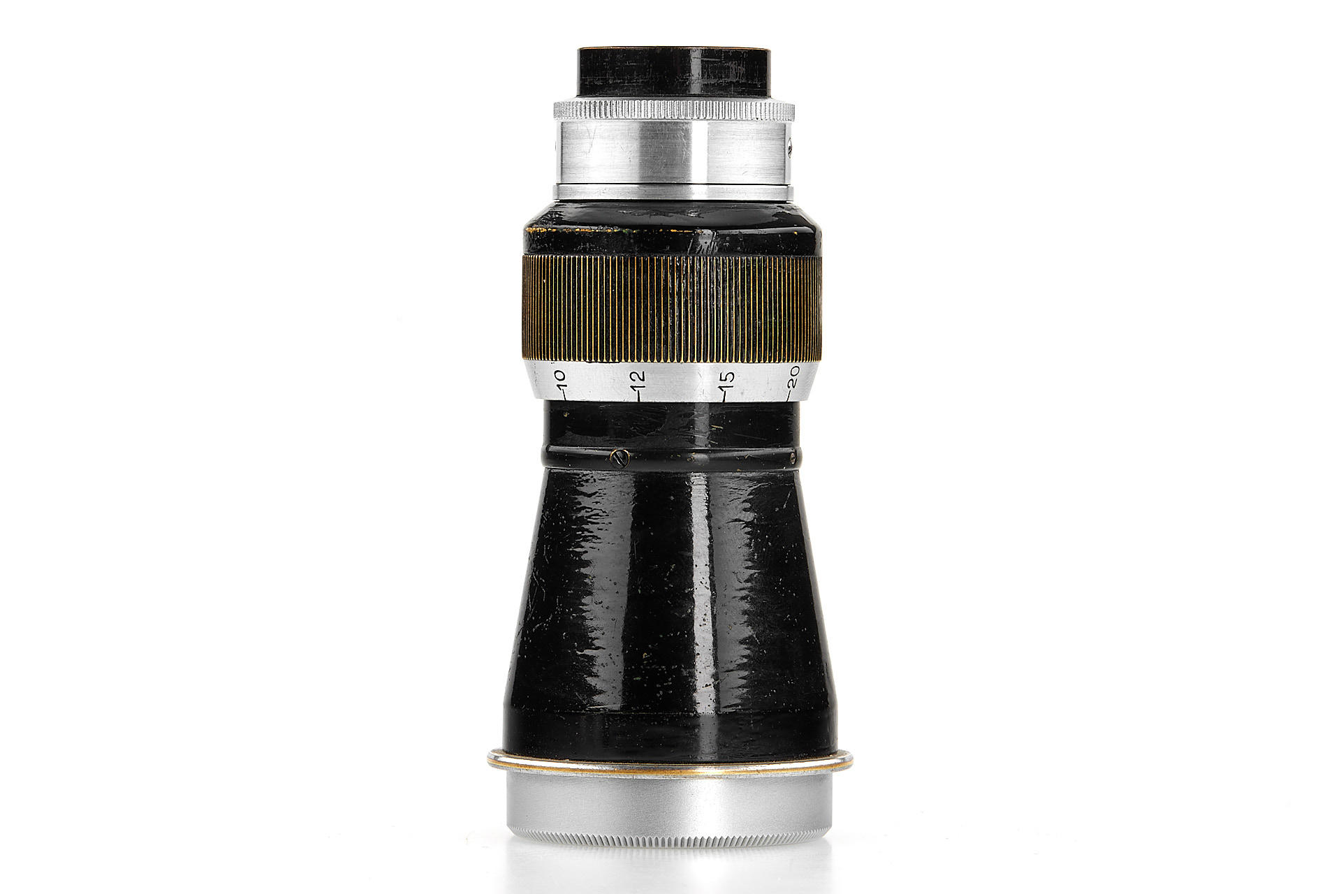 black/chrome 'Berg-Elmar' in fine condition, lens barrel, hood and front cap repainted, good optics