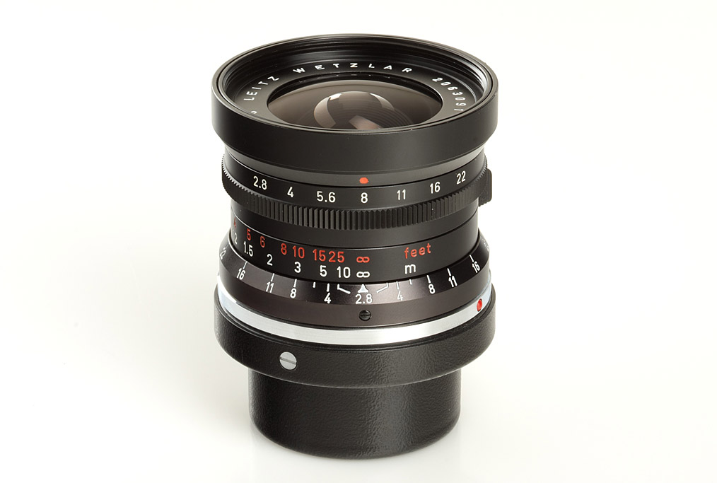 very rare, first type (9-element) Wetzlar Elmarit 28mm from the first batch in new condition, clean lenses, both original caps, hood 12501M, original maker's box, black 28mm BL finder SLOOZ (new in maker's box)