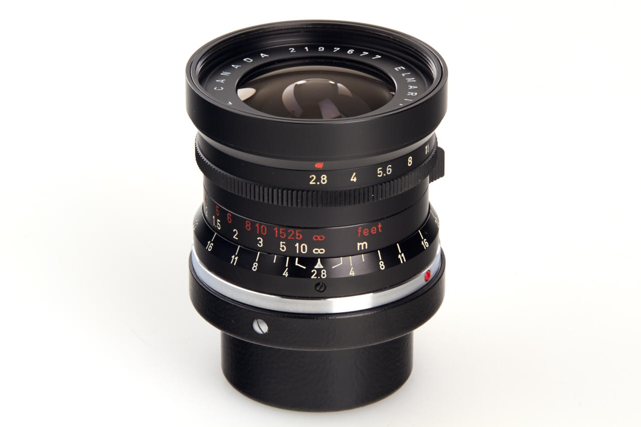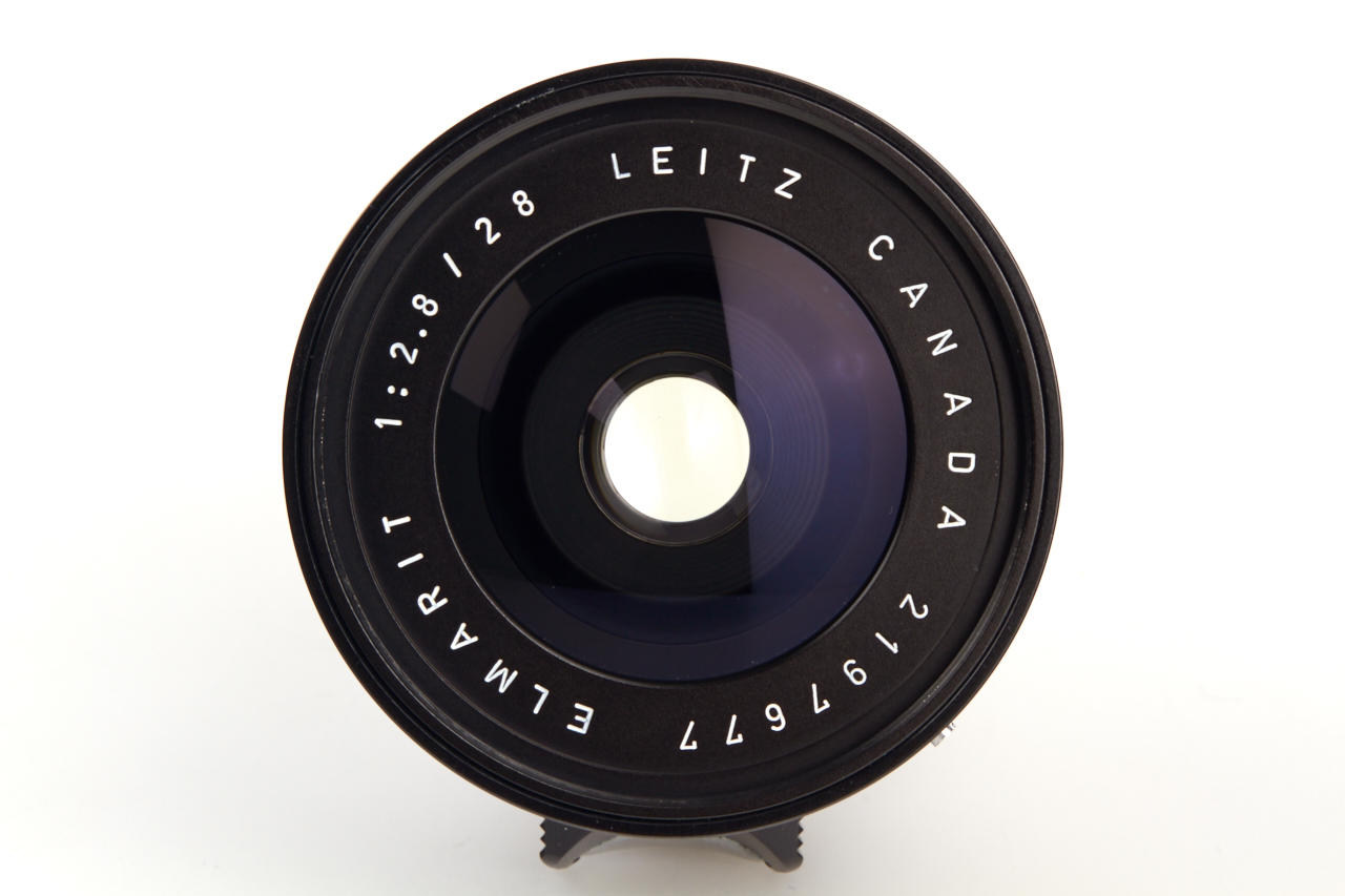 first type Elmarit 28mm (9-element, Canada), in mint condition with perfect clean lenses, both caps, hood 12501, maker's box with matching number, E48 UVa filter with box