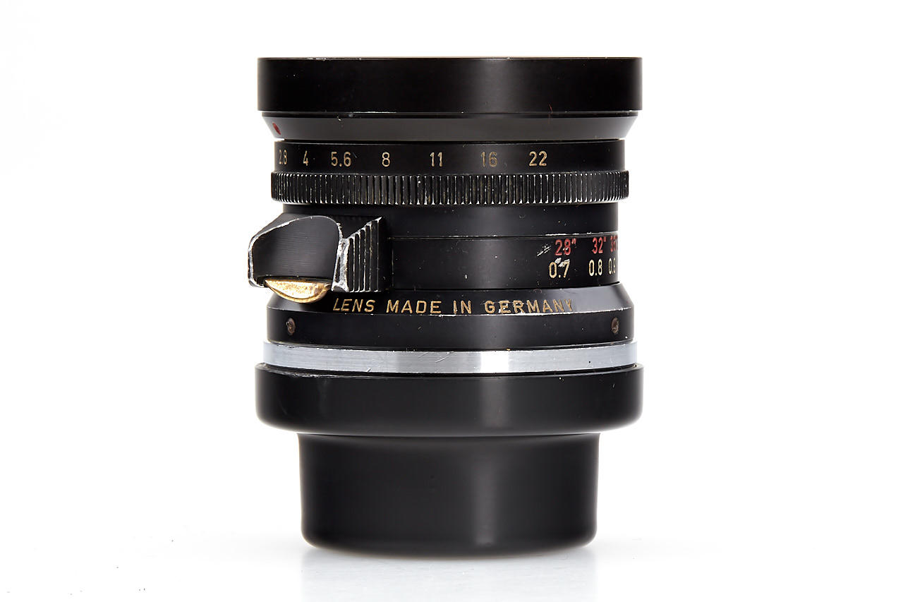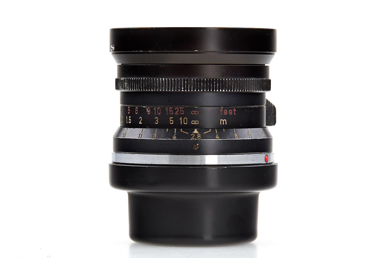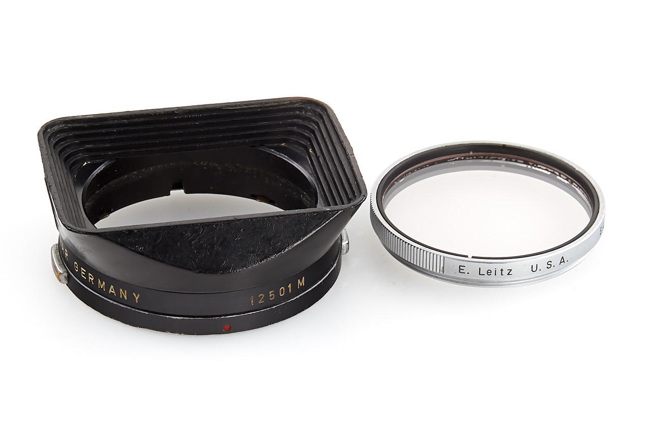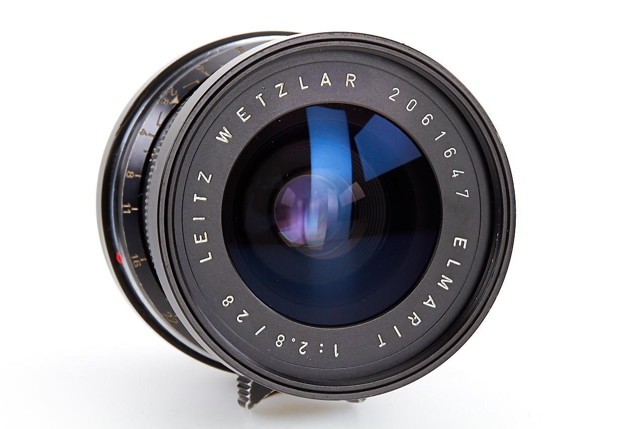 very early and rare first type Wetzlar Elmarit 28mm (9-element), black painted infinity lock, in good condition, optics with only minimal marks, with UV filter, 12501M hood and rear cap
