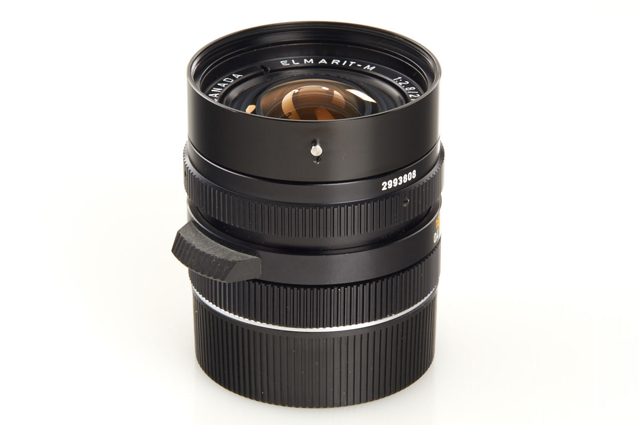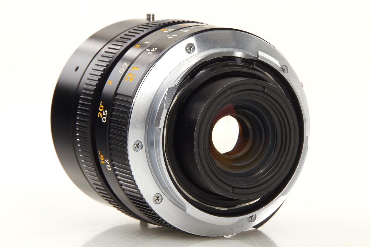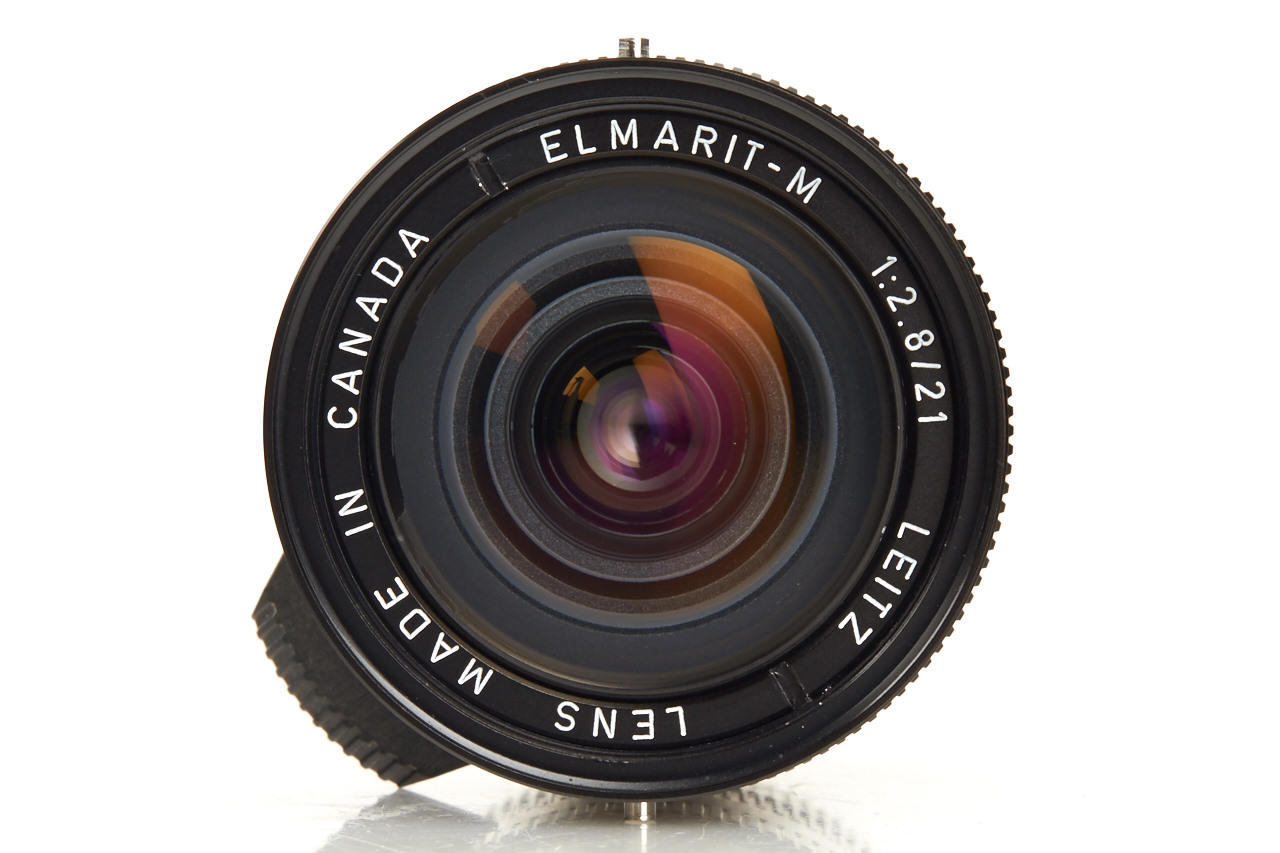 very rare first version Elmarit 21mm for filter E49, with 0.4m focusing scale, in mint condition and perfect clean lenses, with serrated focus lever, early lens hood 12537 with two cut outs, rear cap - this lens never reached the market and was used for testing and evaluation