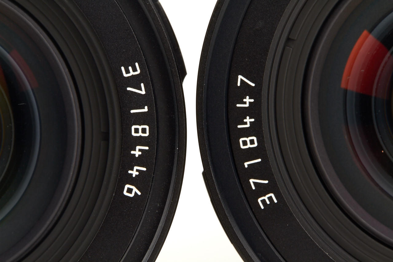 two lenses with consecutive serial numbers in new condition from the last batch produced 1995 in Canada (these lenses were never delivered to the market), with rear cap and red ELC front cap