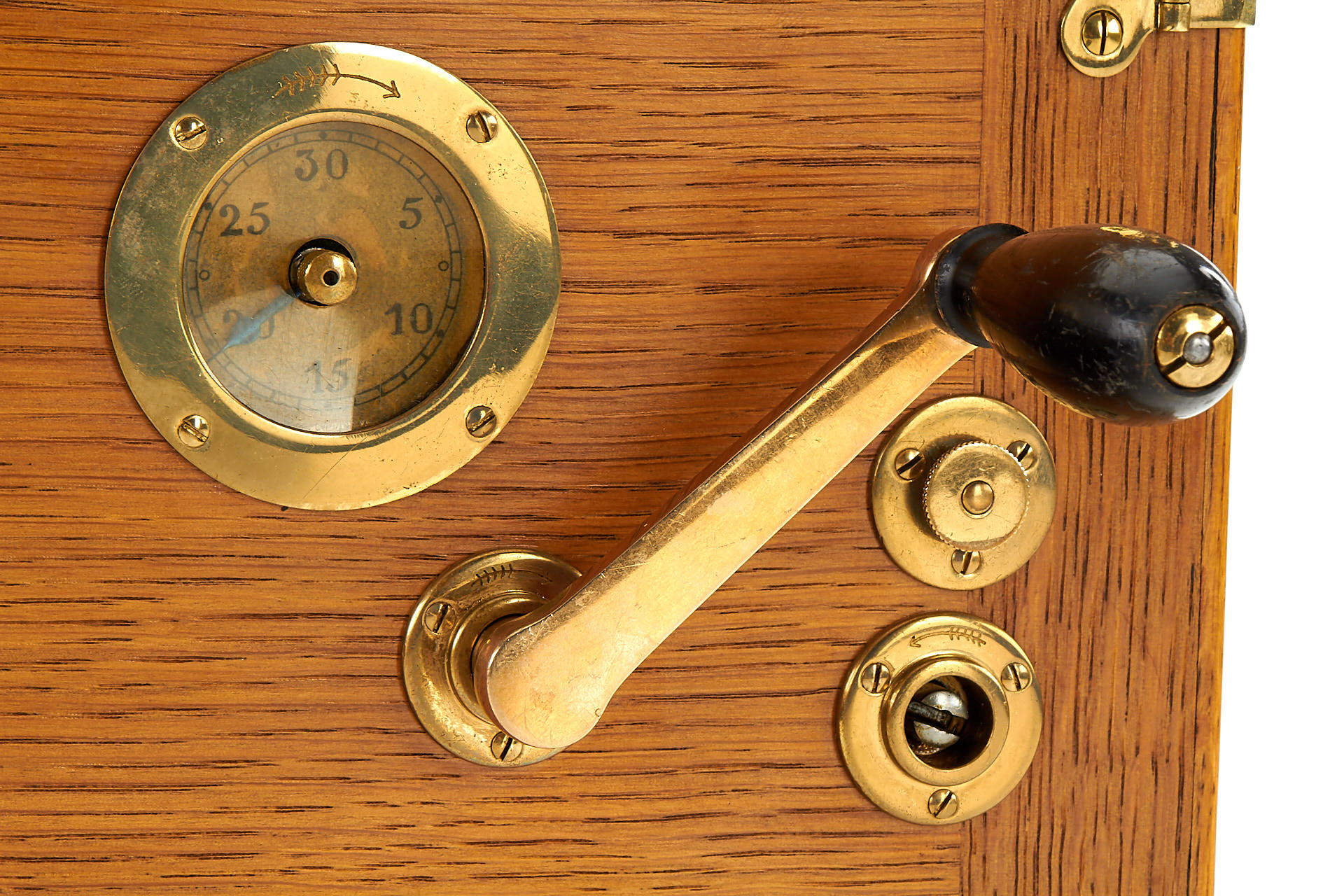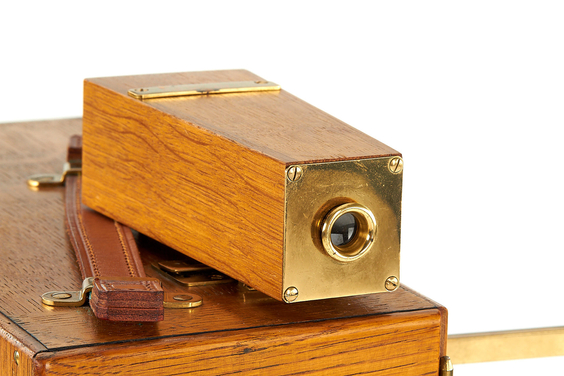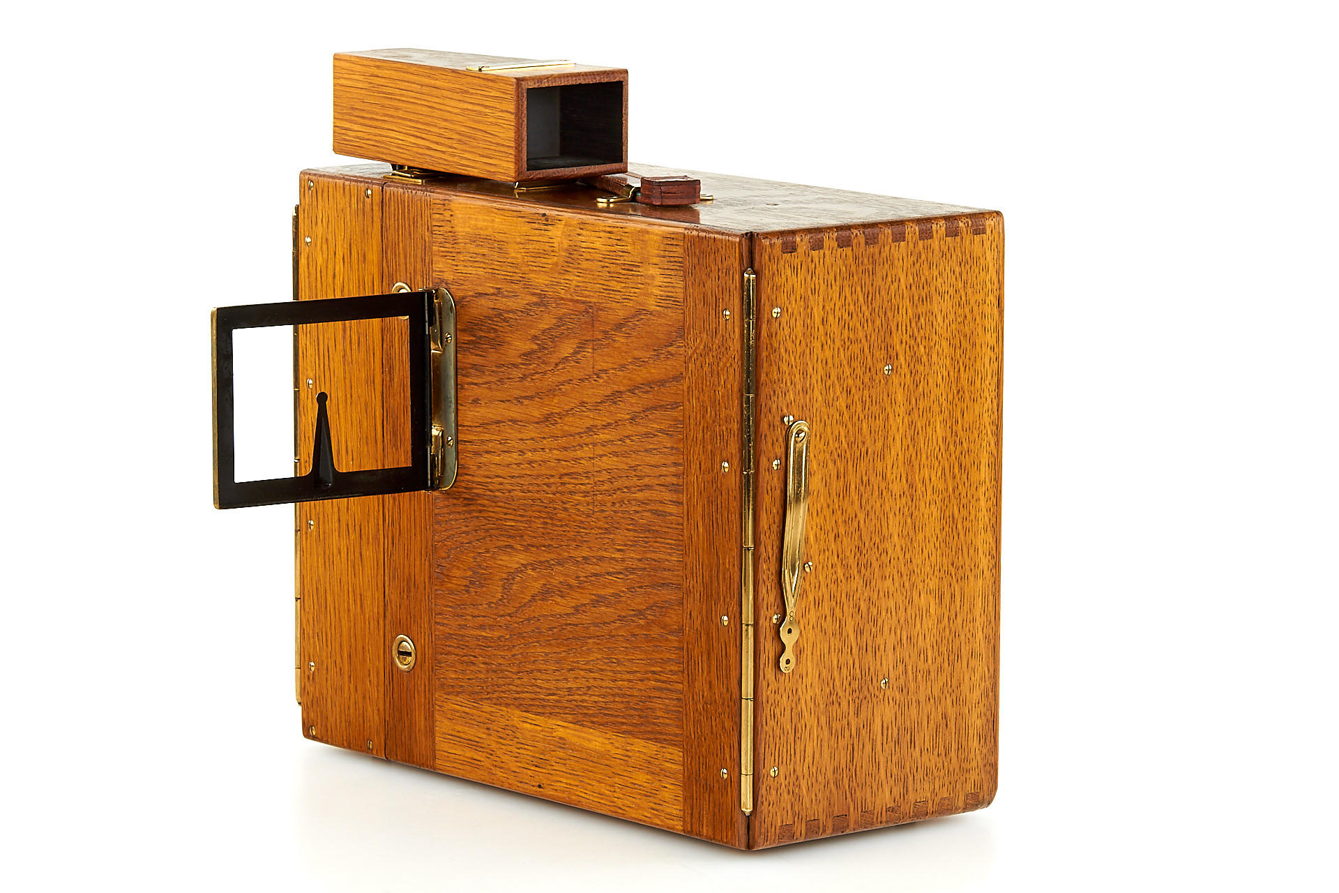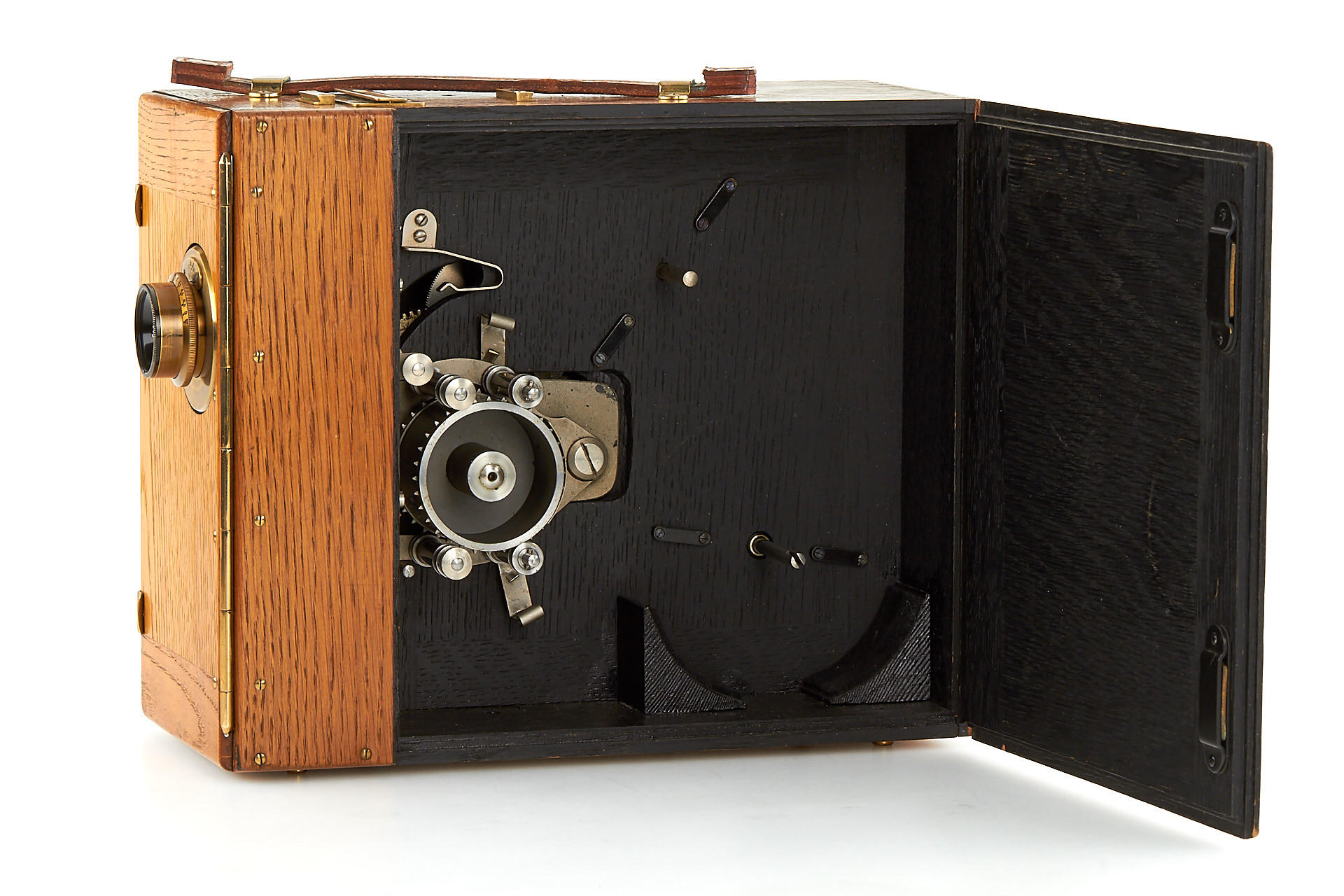 early wooden hand-cranked 35mm motion picture camera, in beautiful cosmetic condition (completely restored) and in good working order, with Ernon 3.5/5cm no.97170, crank, finder, 4 cassettes, cap