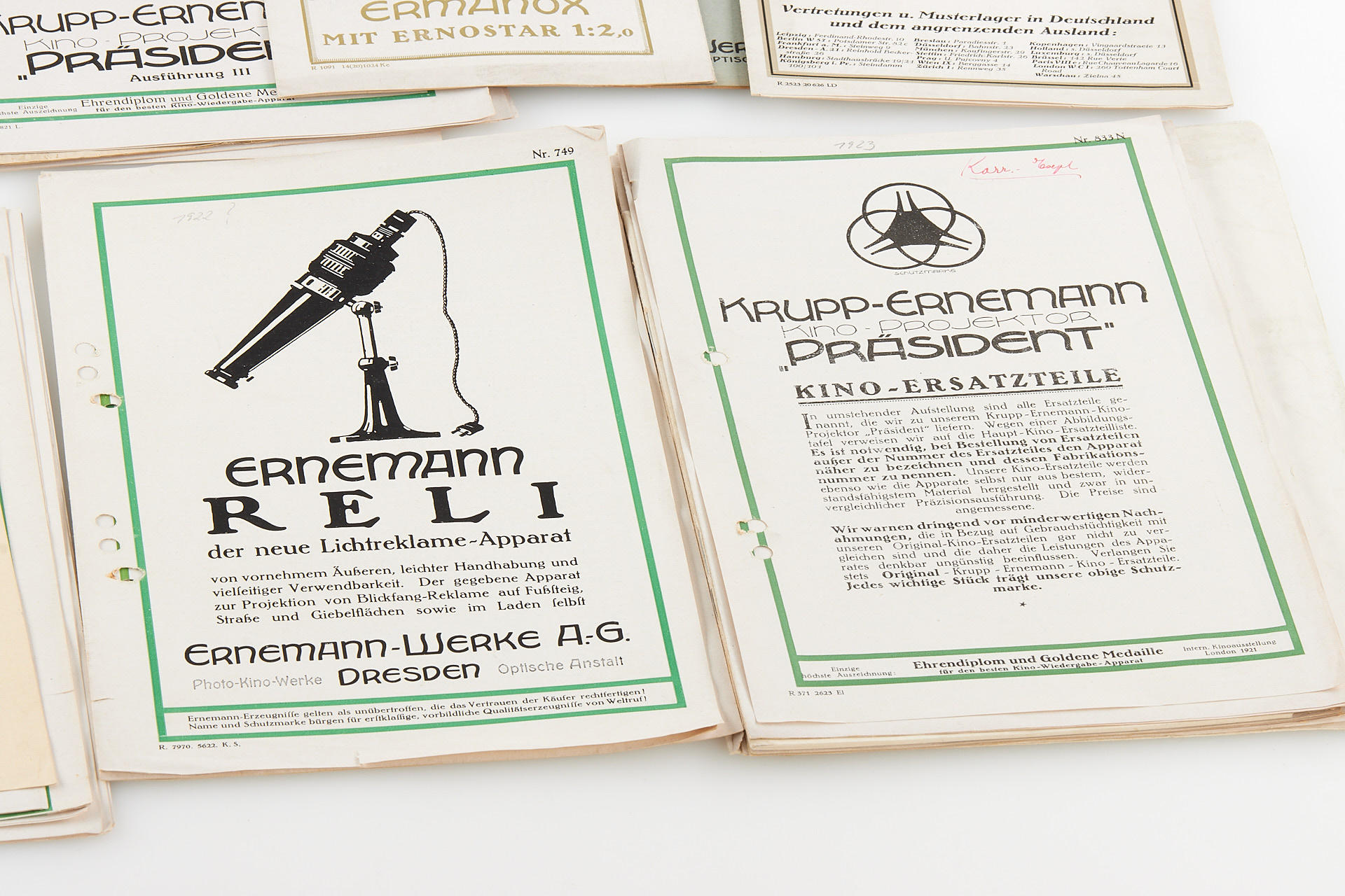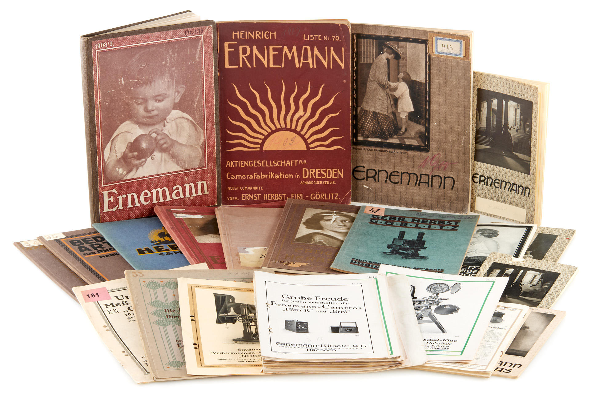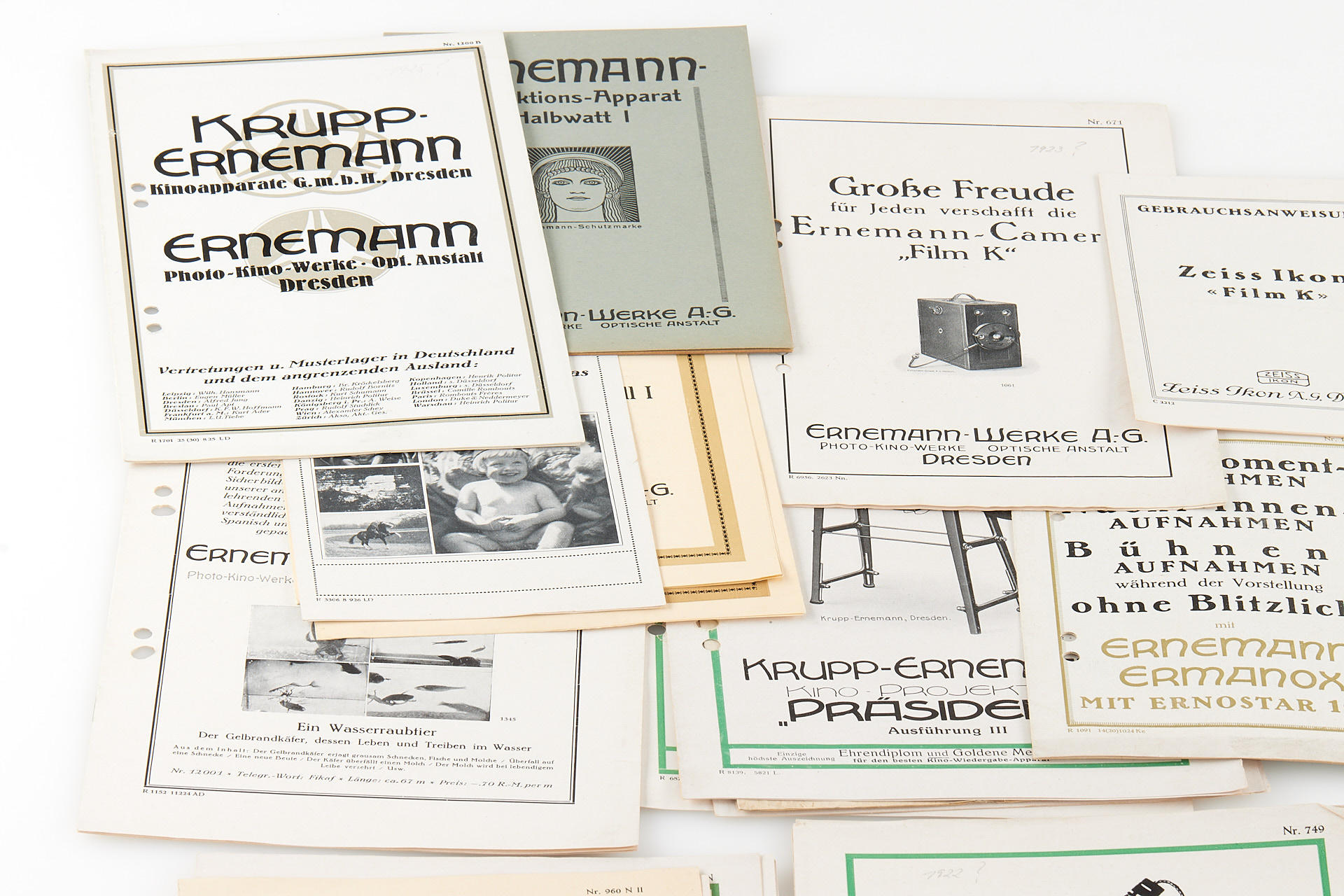 A large lot of approximately 60 beautifully illustrated original catalogues, brochures and flyers from Ernemann, from approximately 1907 to 1925, all in good to very good condition (many smaller ones perforated)