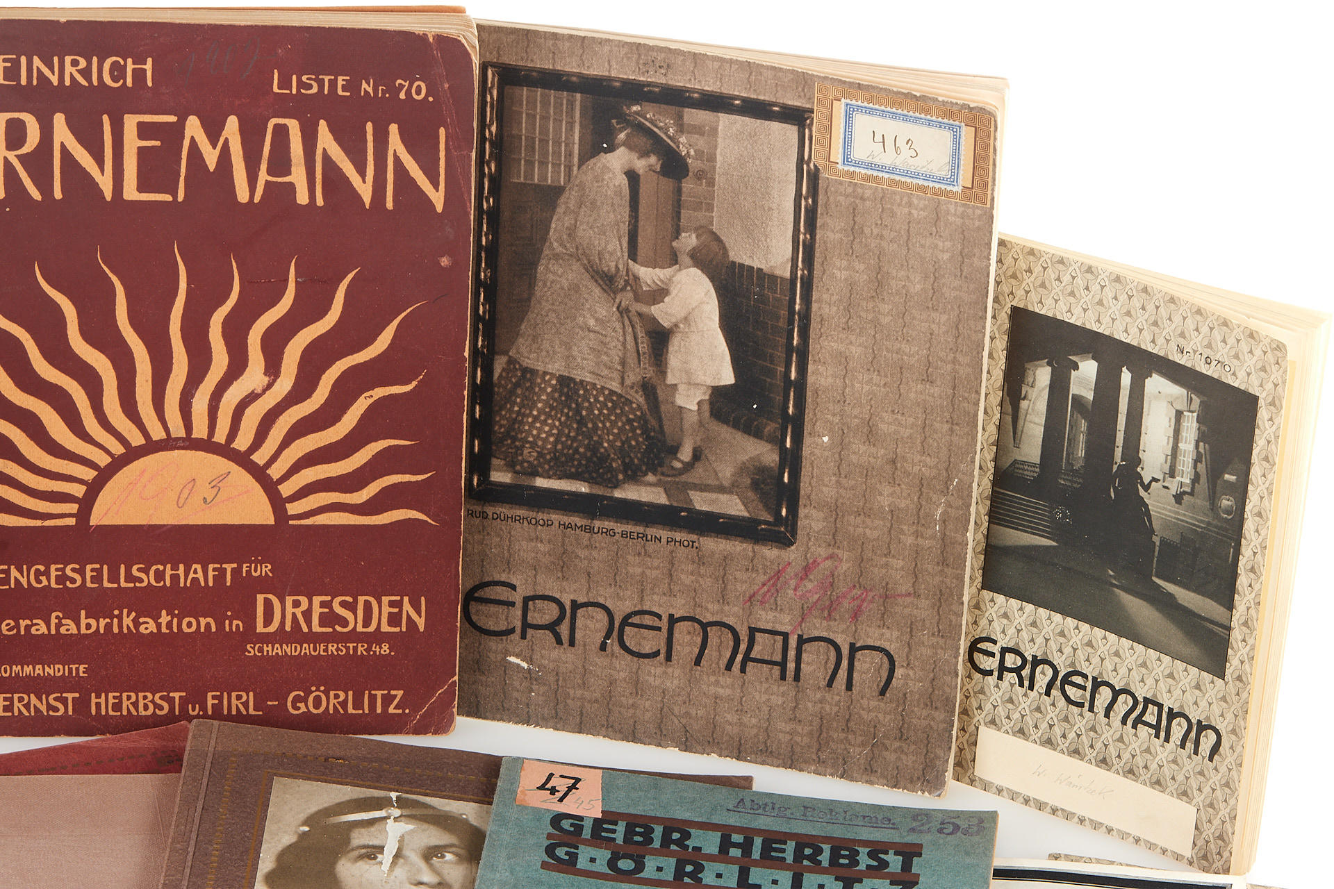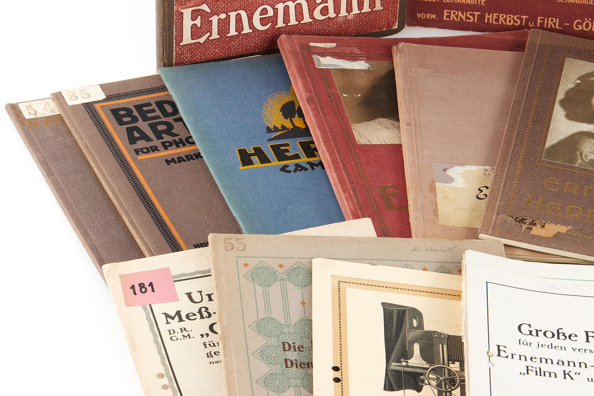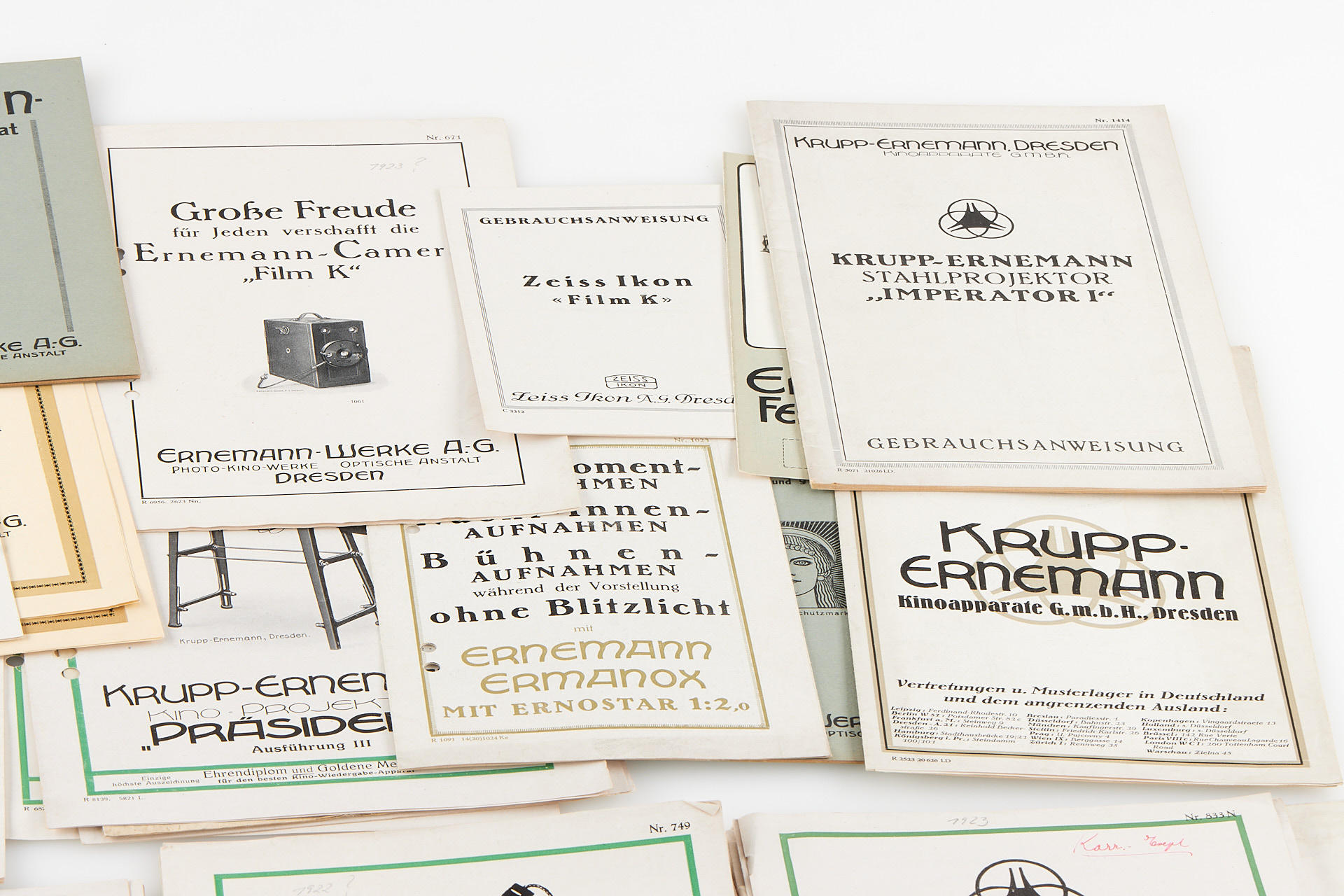 A large lot of approximately 60 beautifully illustrated original catalogues, brochures and flyers from Ernemann, from approximately 1907 to 1925, all in good to very good condition (many smaller ones perforated)